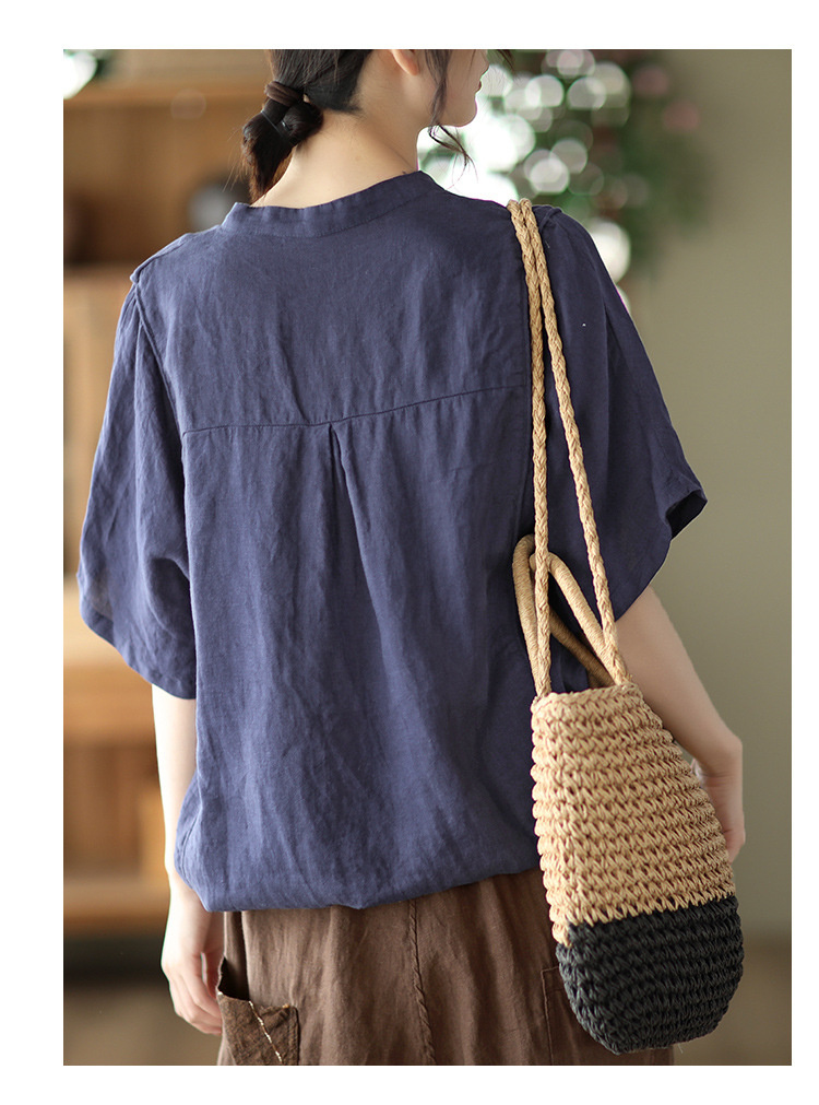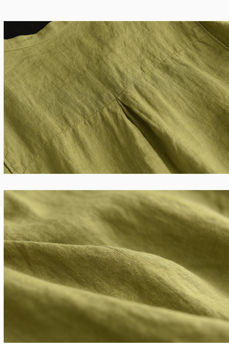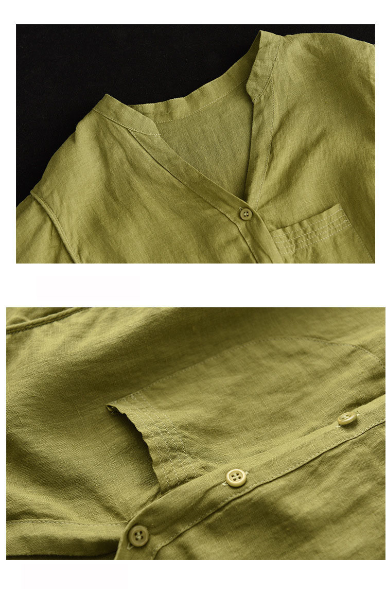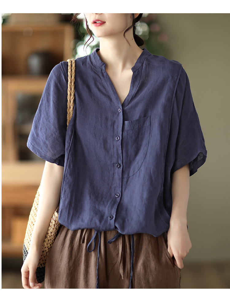 抜け感がある五分袖シャツ 綿麻 裾紐付