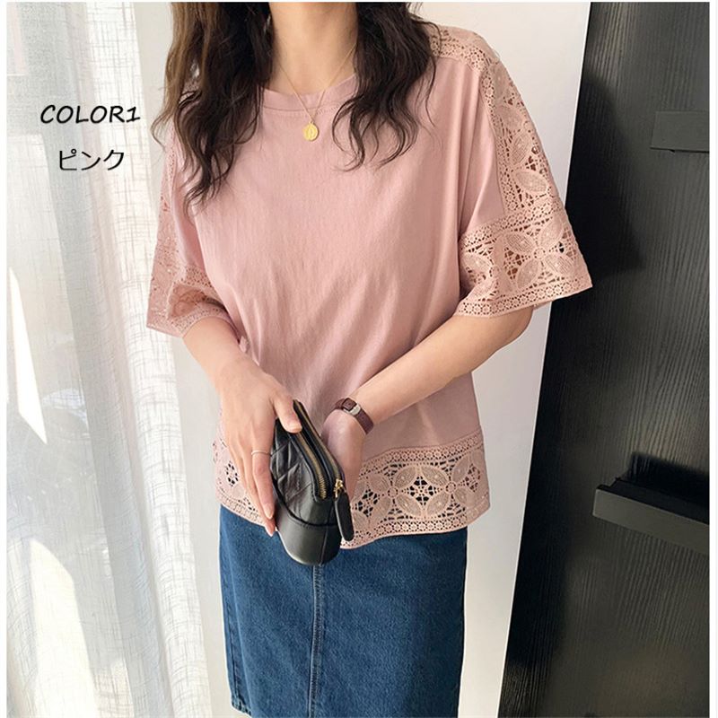 大人可愛い レース ブラウス Tシャツ
