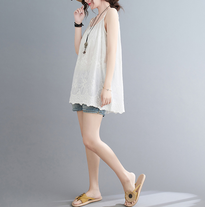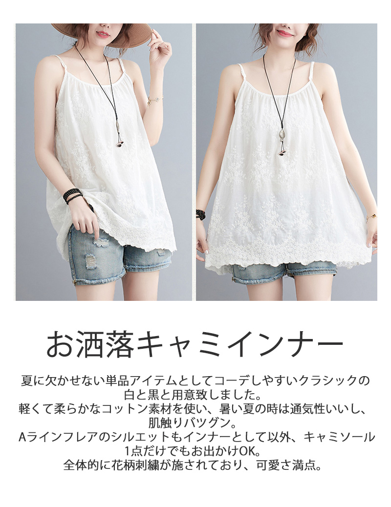 可愛い刺繍づきレースキャミソール 綿