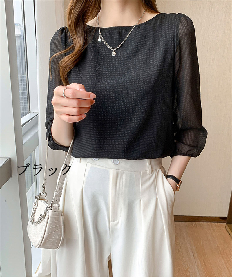 シフォンブラウス シアーブラウス ボリューム袖
