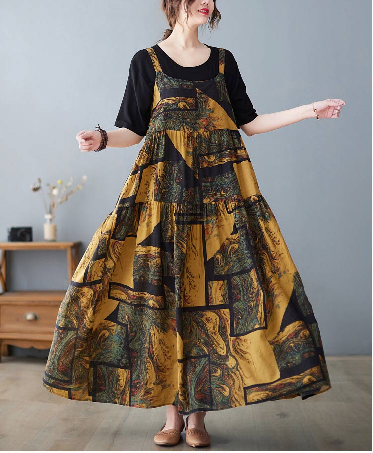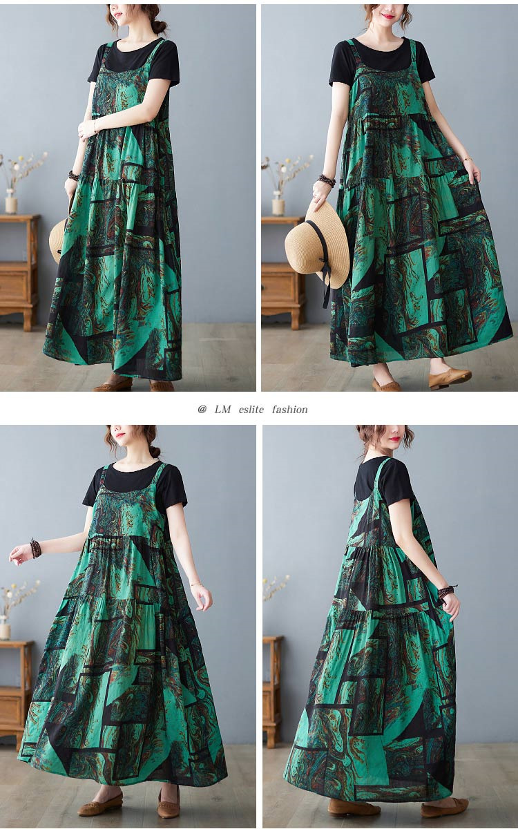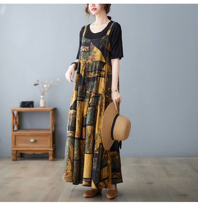 総柄ロング丈ジャンパースカート マキシ