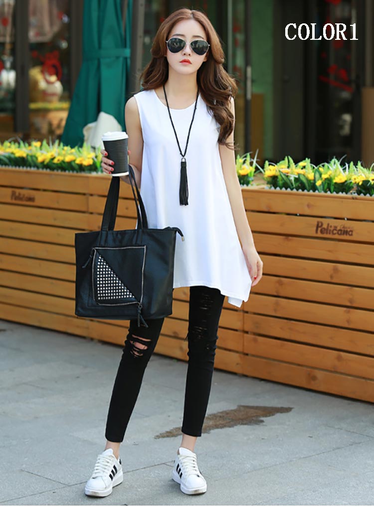 タンクトップレディースTシャツノースリーブUネックロゴプリント