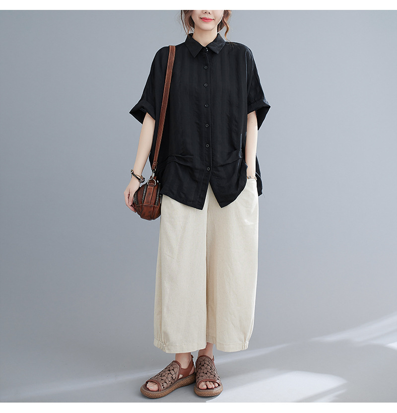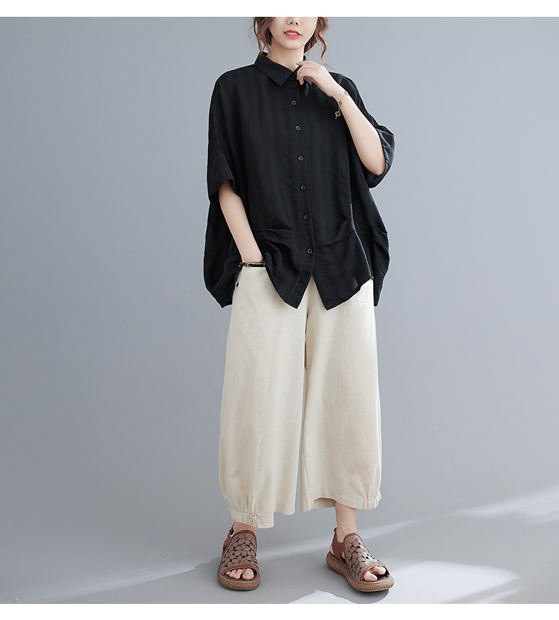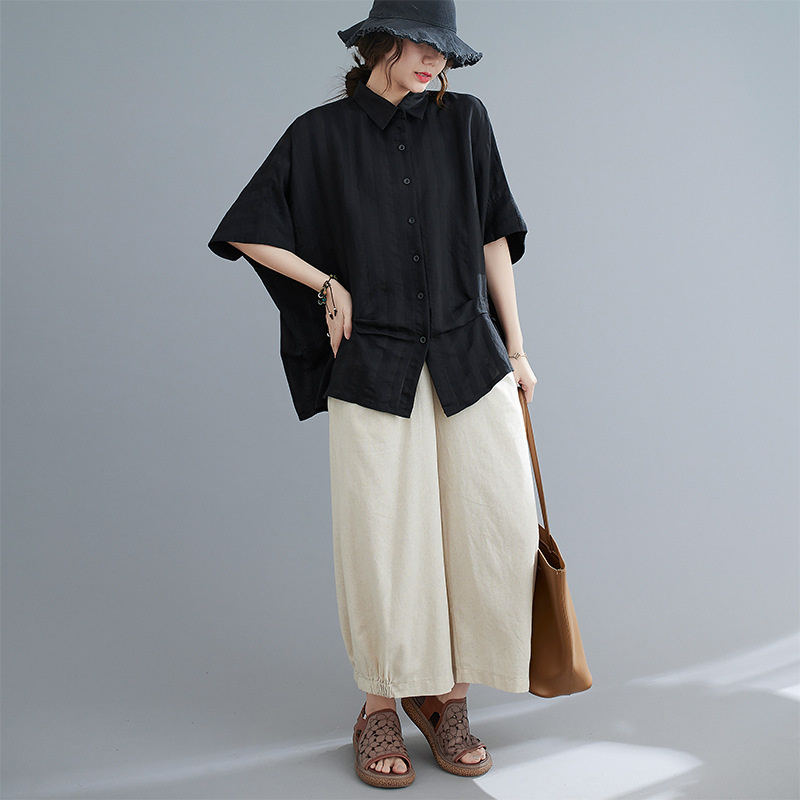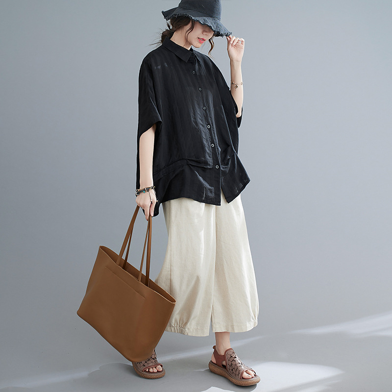 大人のこなれ感漂うドルマンシャツ ブラ