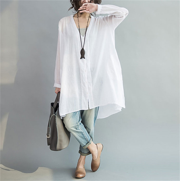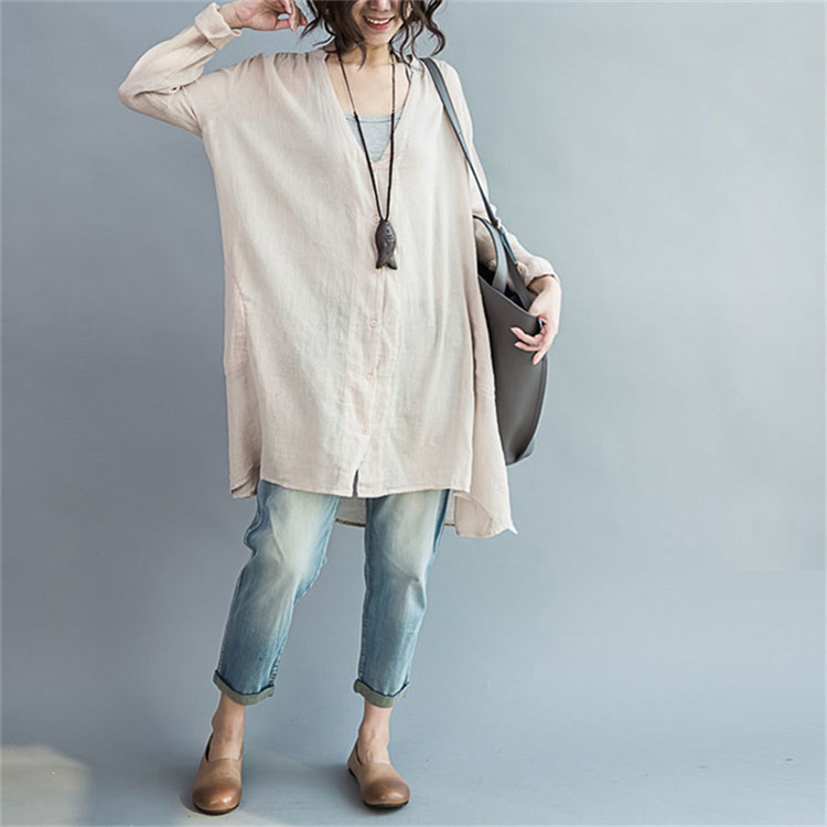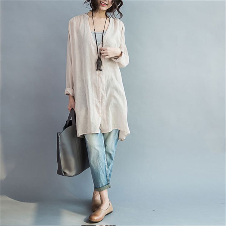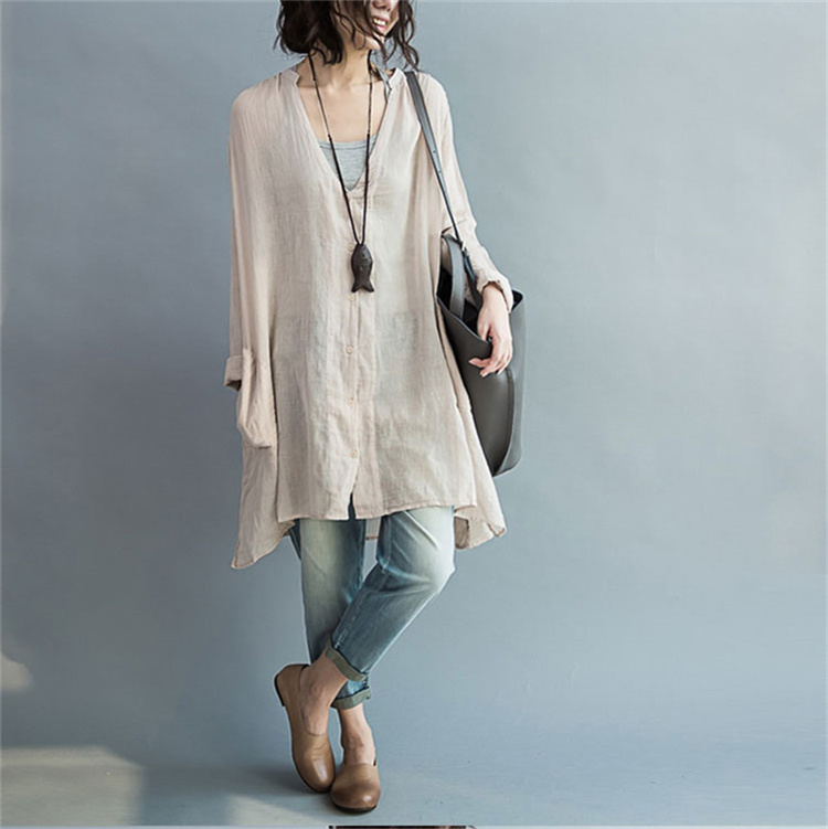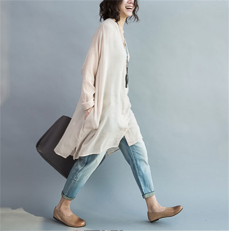 体型カバー力抜群ロングシャツ リネン風