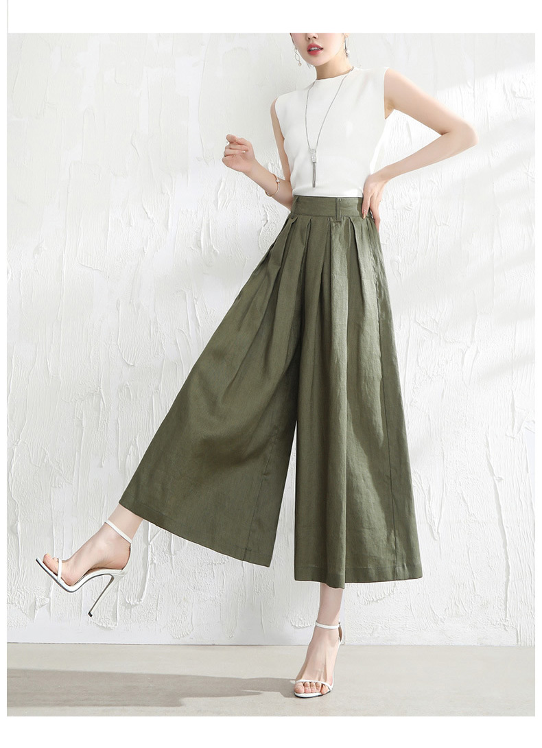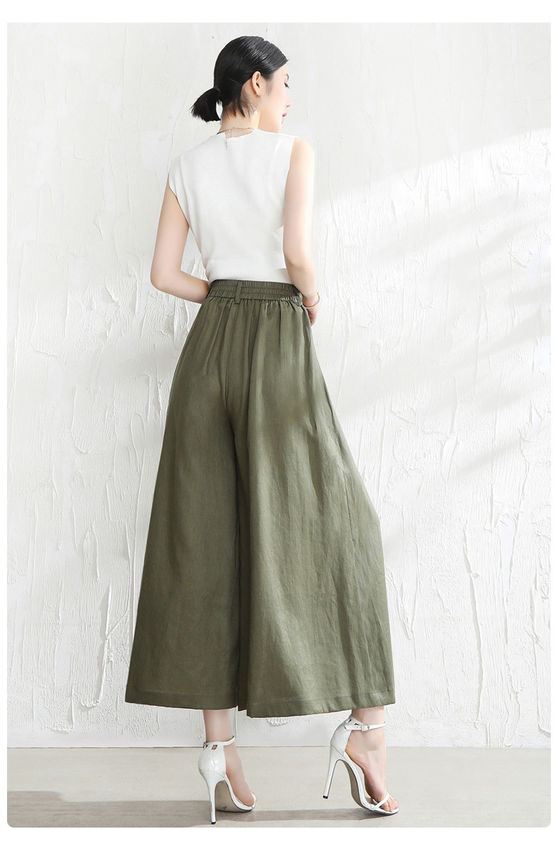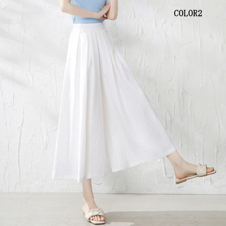 綿麻パンツ ワイドパンツ クロップド