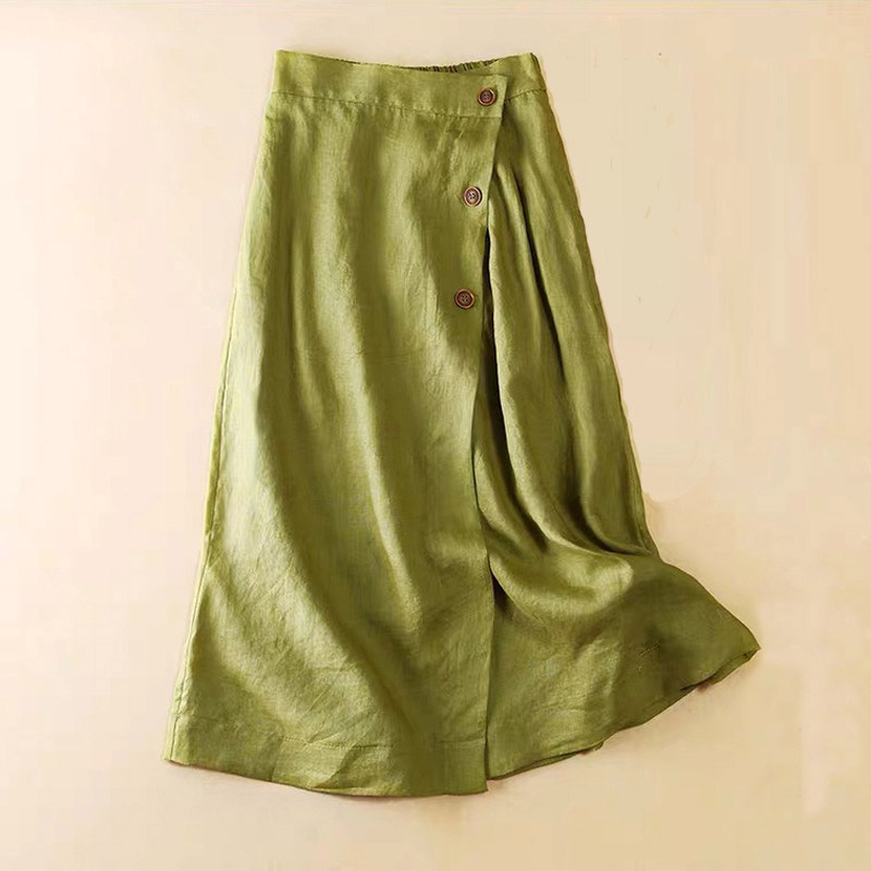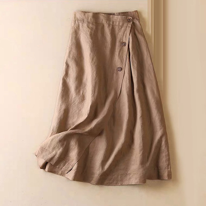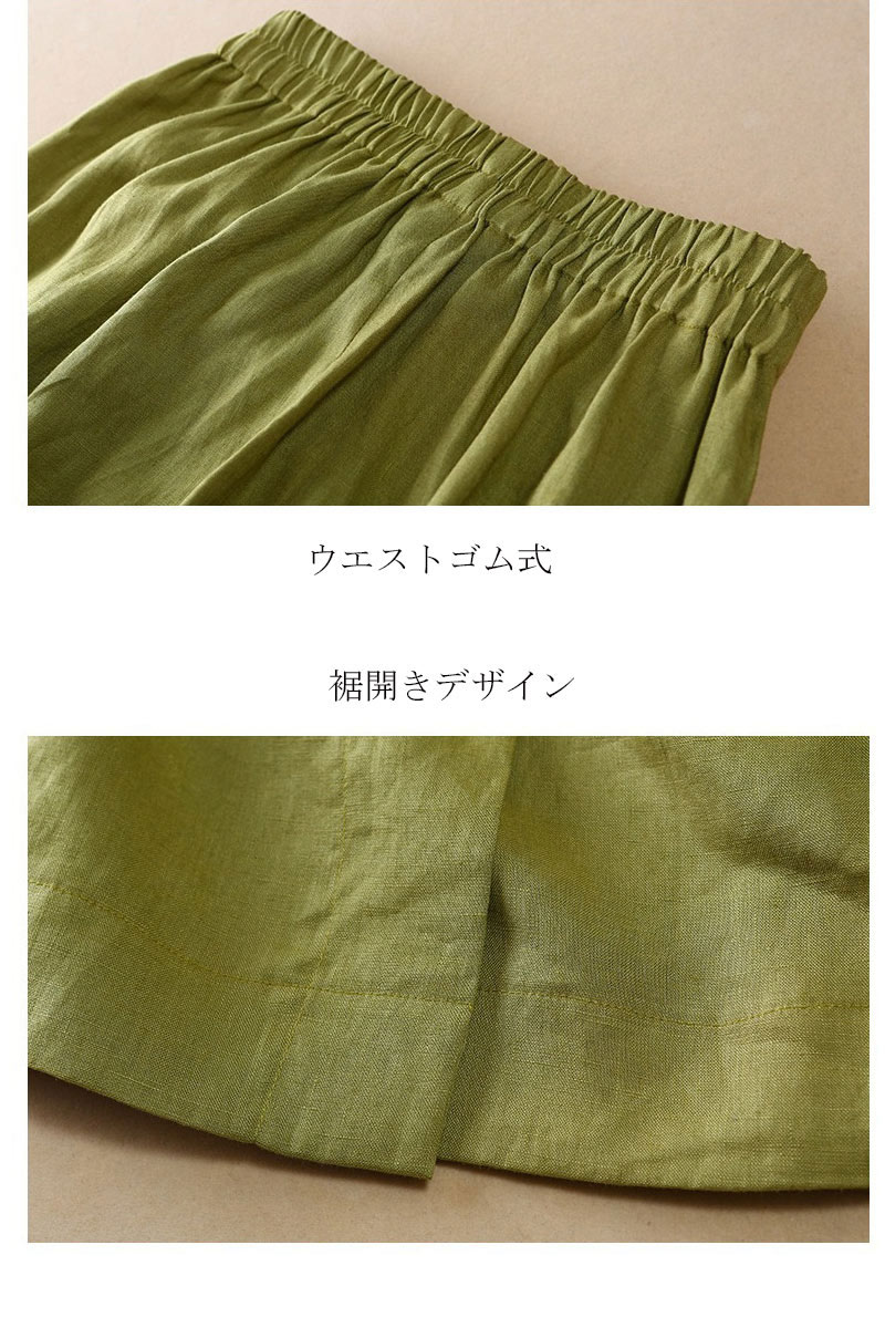スカート レディース リネン混 膝丈
