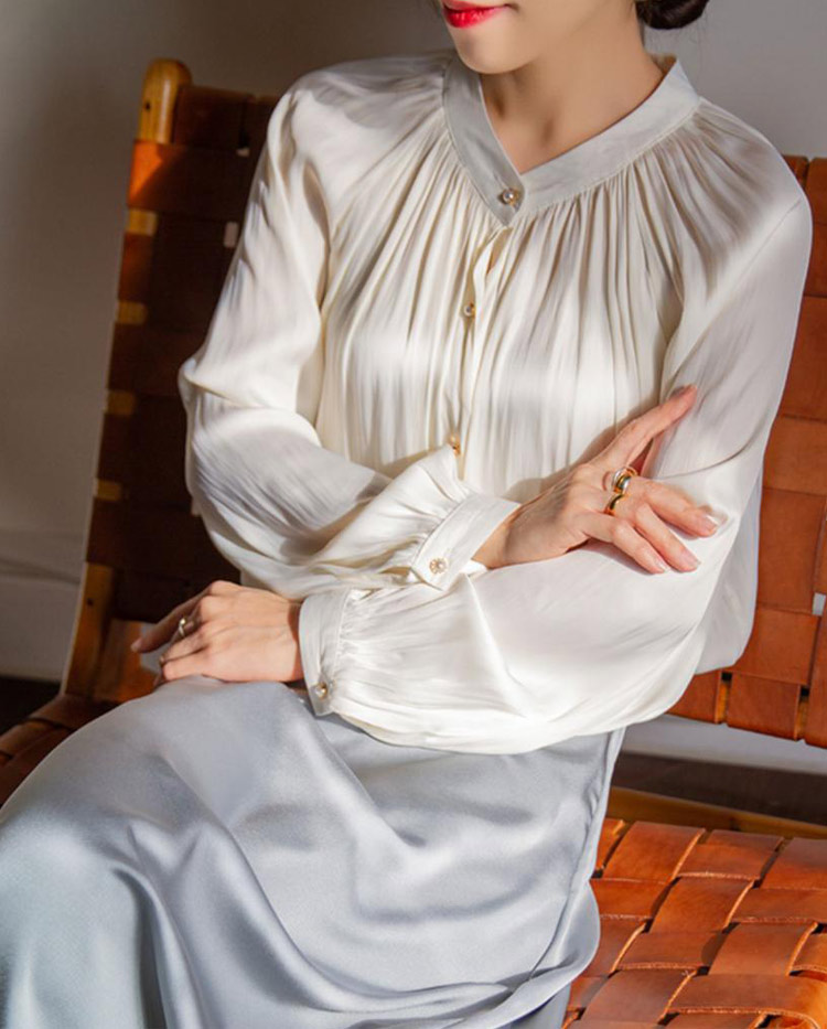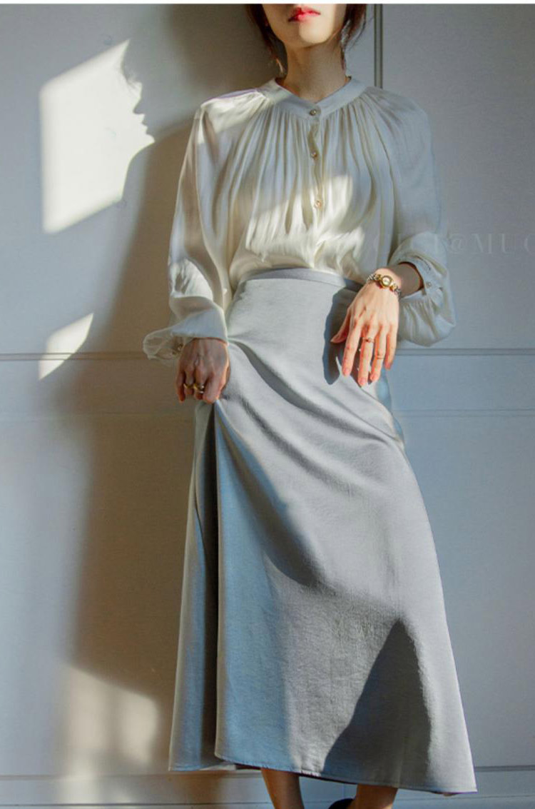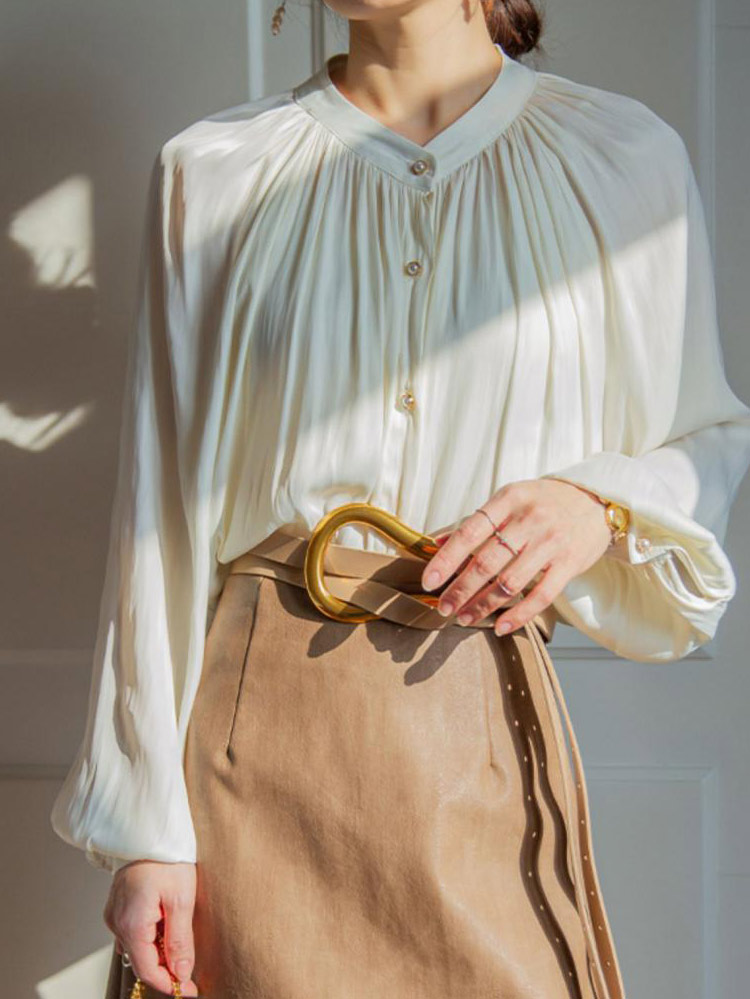 シアースリーブ ドッキングシャツ ボウタイシャツブラウス