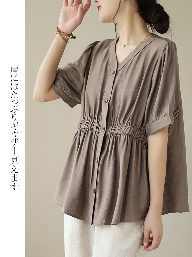 楽チン、きれいめ Vネックシャーリング