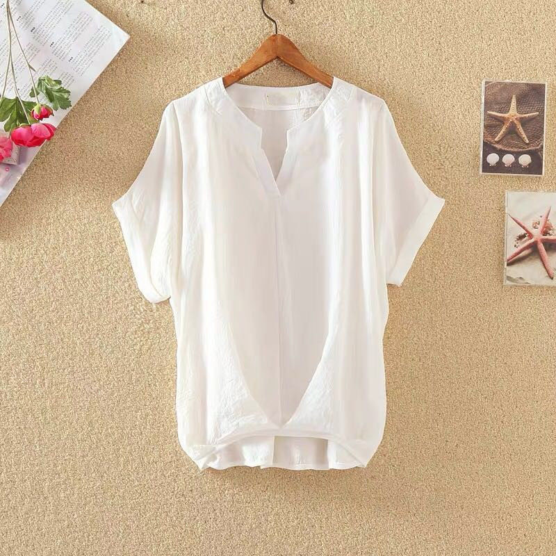 パフスリーブ シャツ レディース ブラウス 半袖シャツ プリーツシャツ 半袖ブラウス 夏 プルオーバー バンドカラー コットン 無地 20代 30代 40代 かわいい カジュアル S M L XL 2