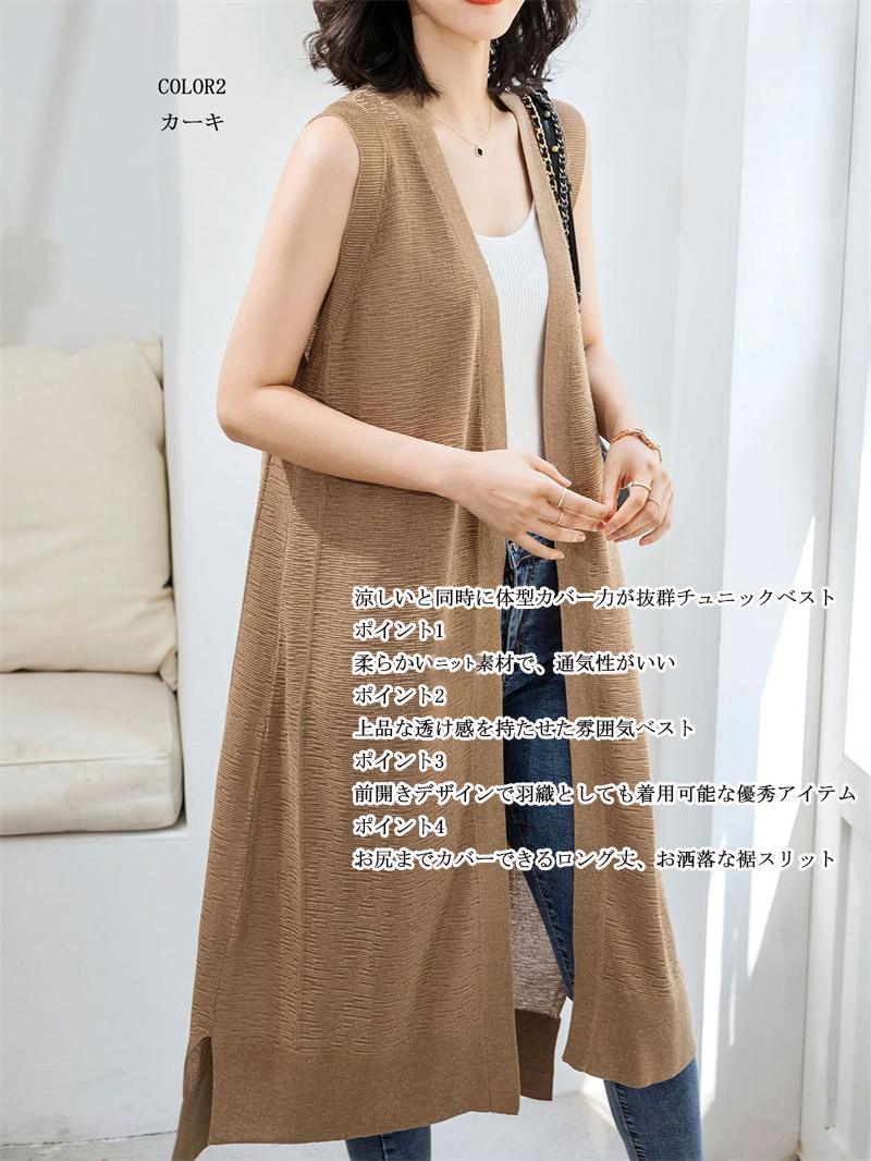 接触冷感ロングジレ ニットソー カット