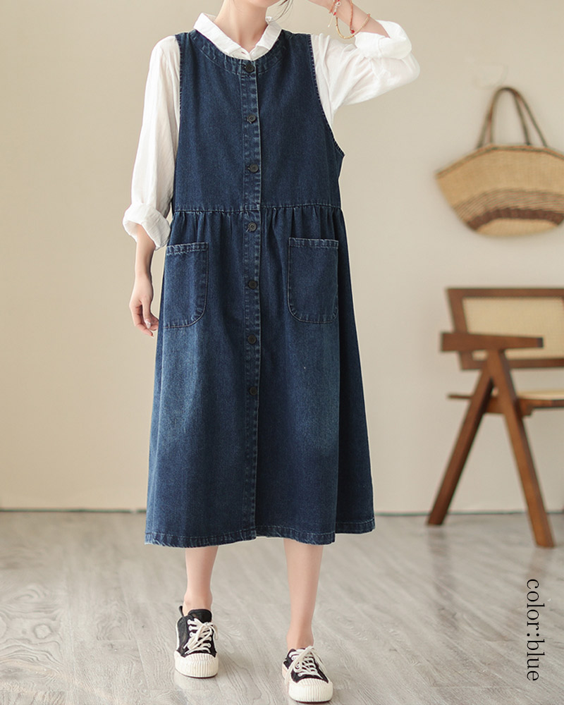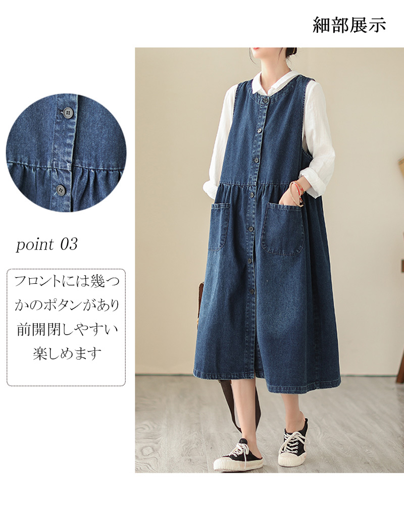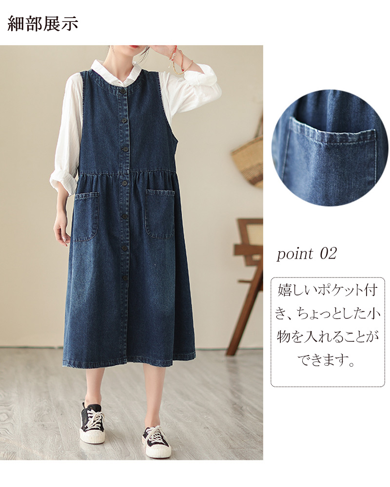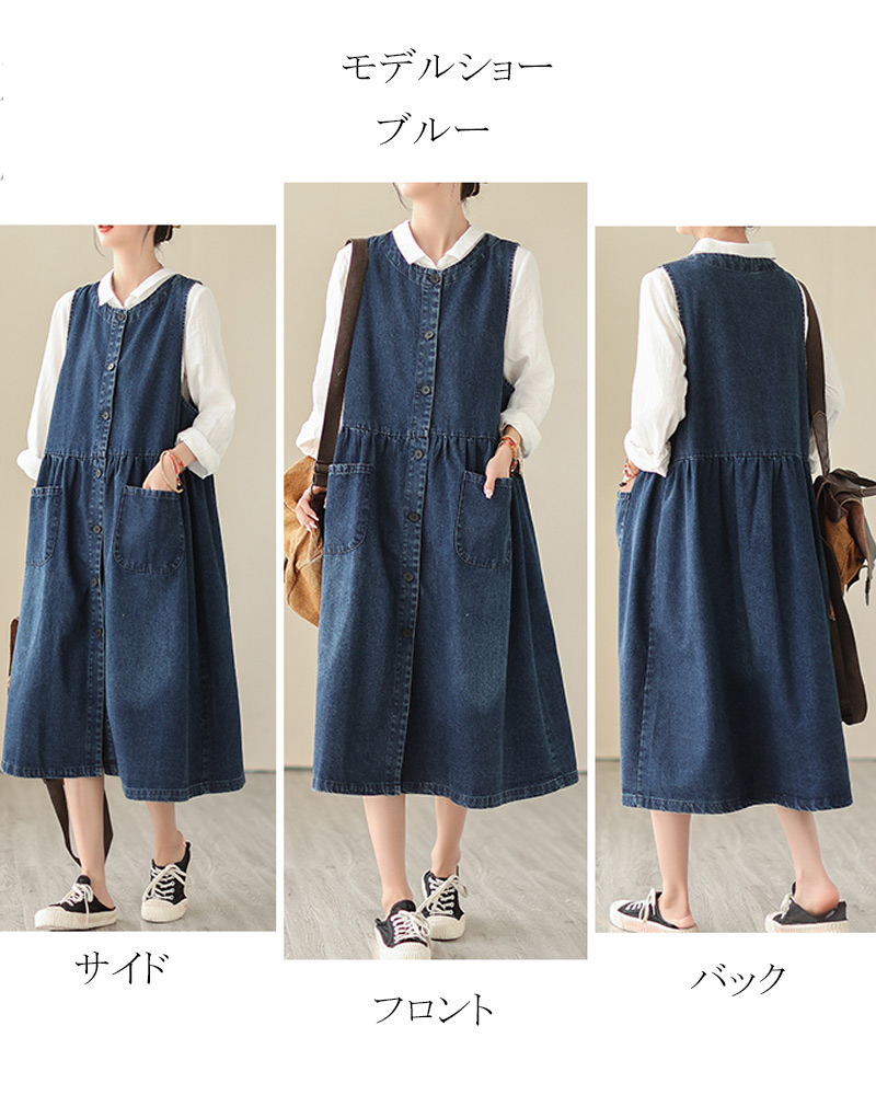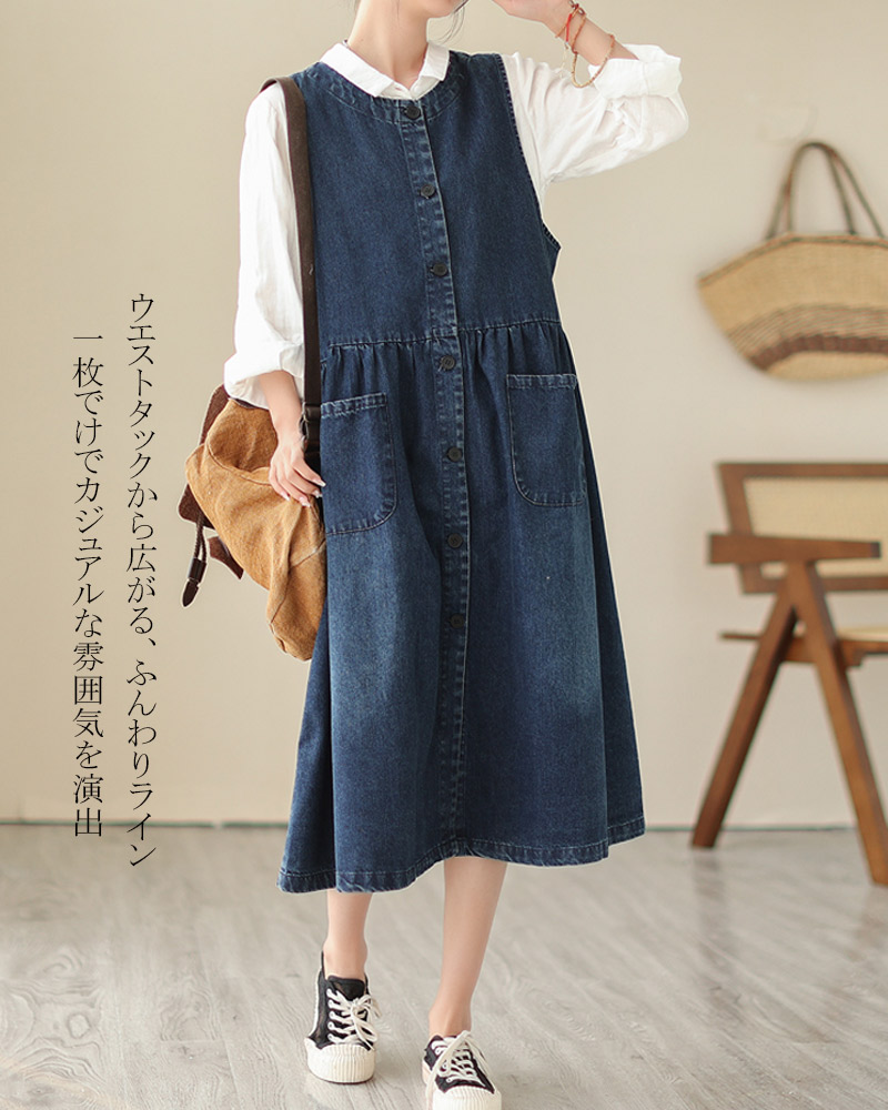 デニムワンピース ノースリーブ サロペ