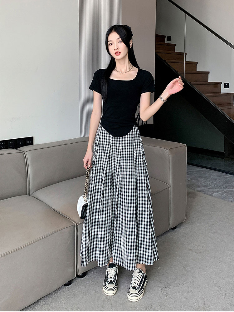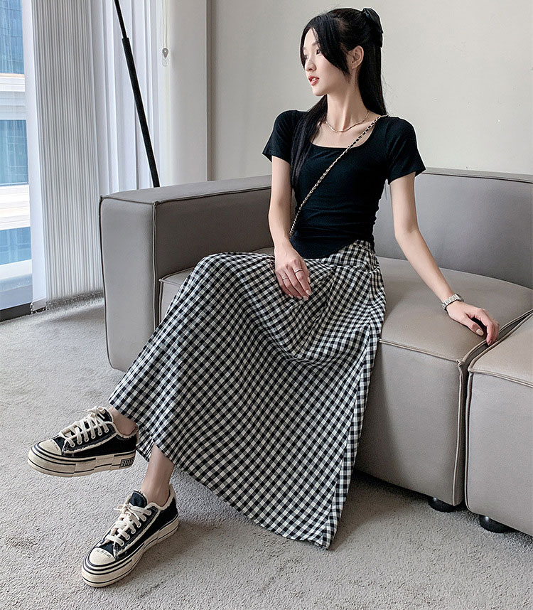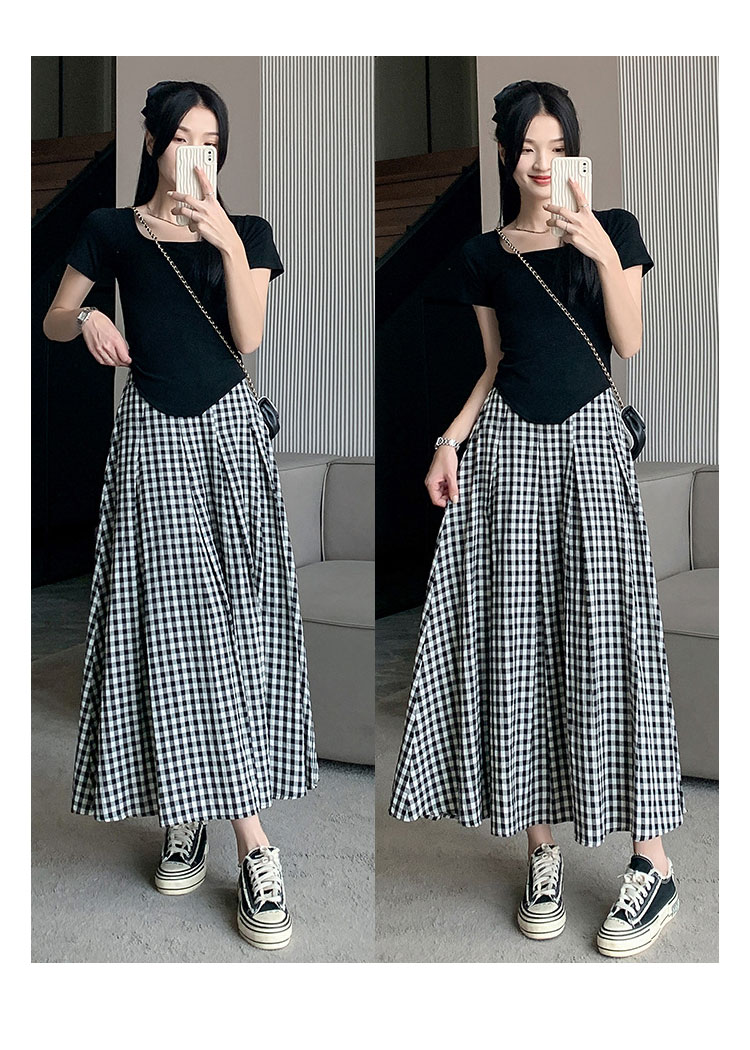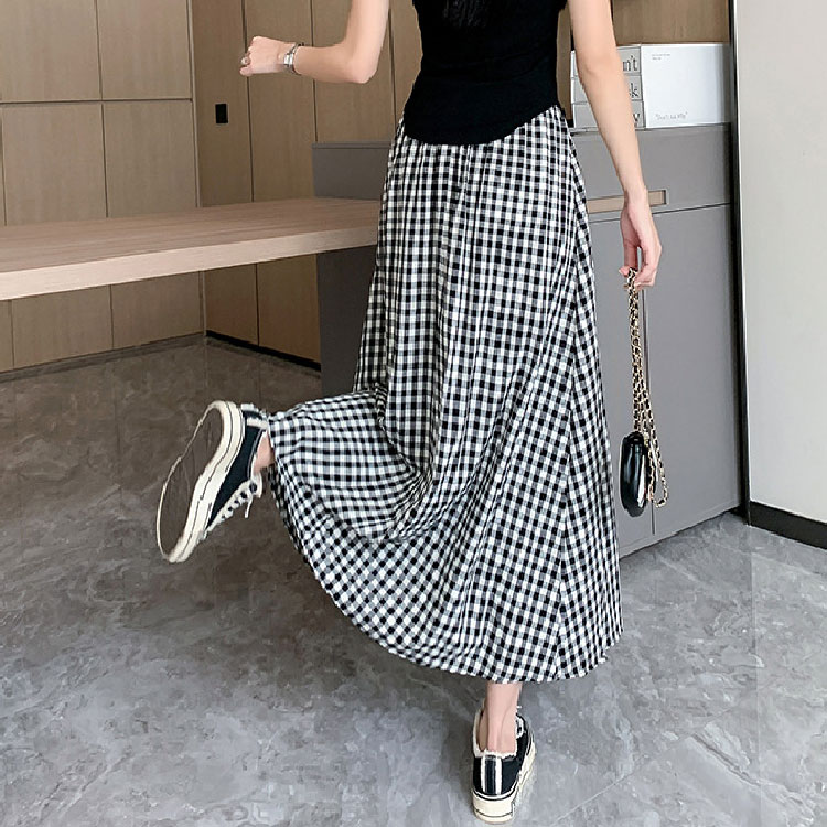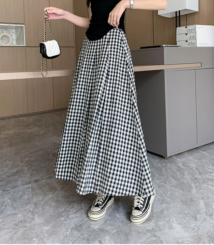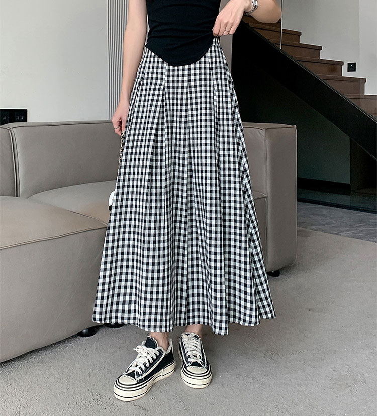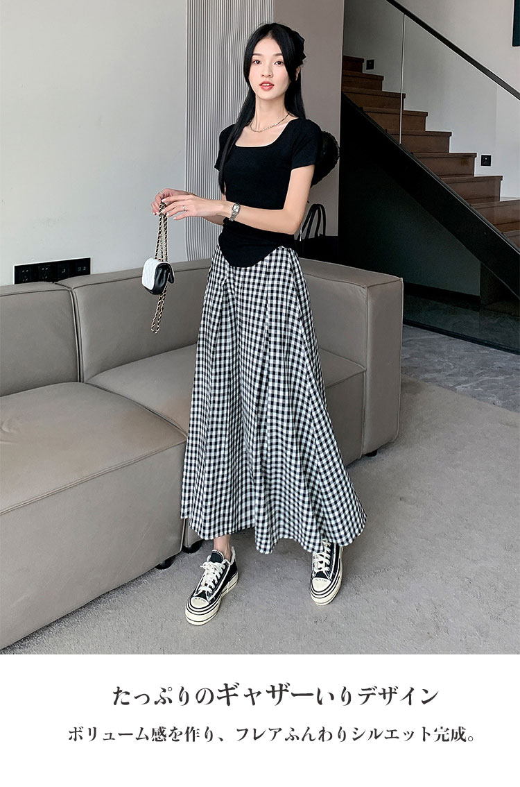 定番チェック柄ロングスカート タックい