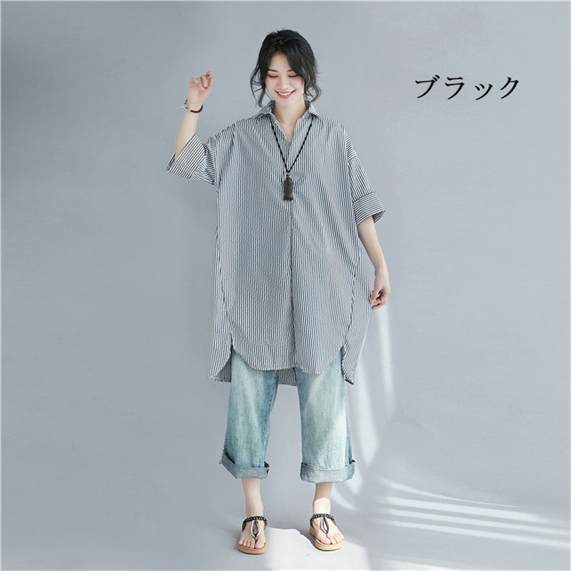 体型カバー力抜群ロングシャツ 五分袖