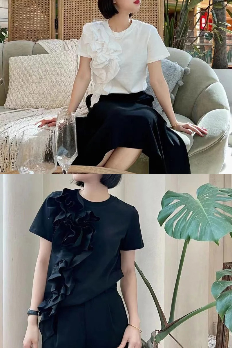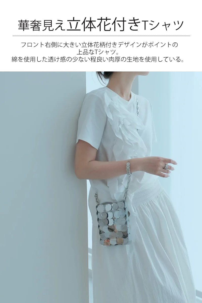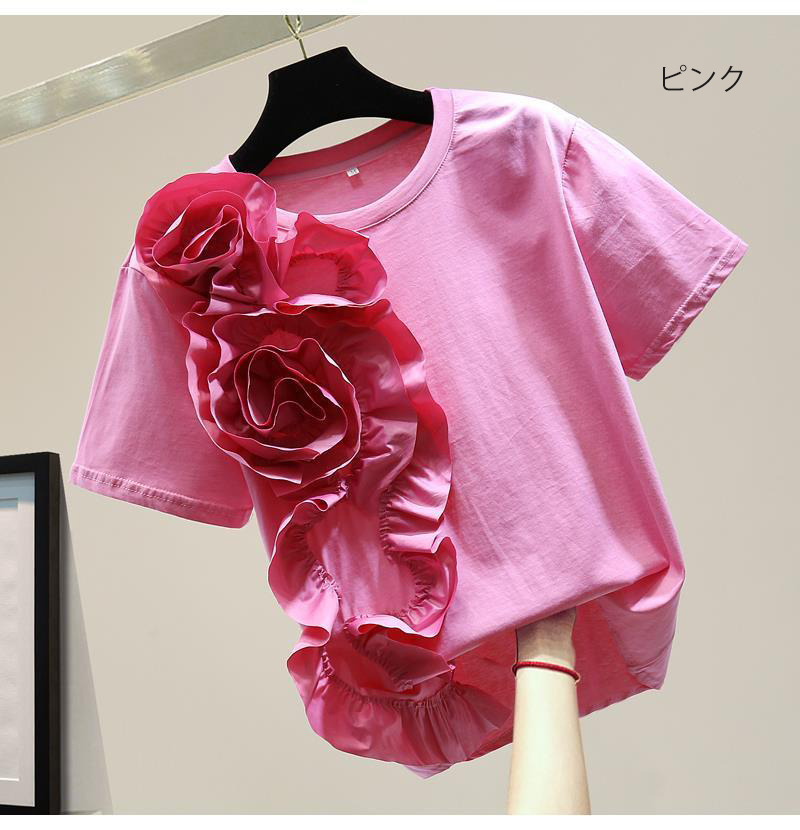 切り替えTシャツ ビッグ立体花 夏 カ