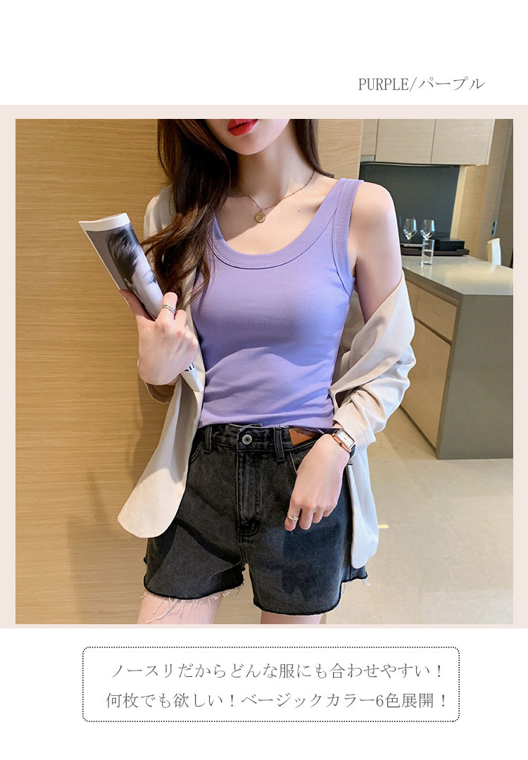 リブインナー リブタンクトップ Uネッ