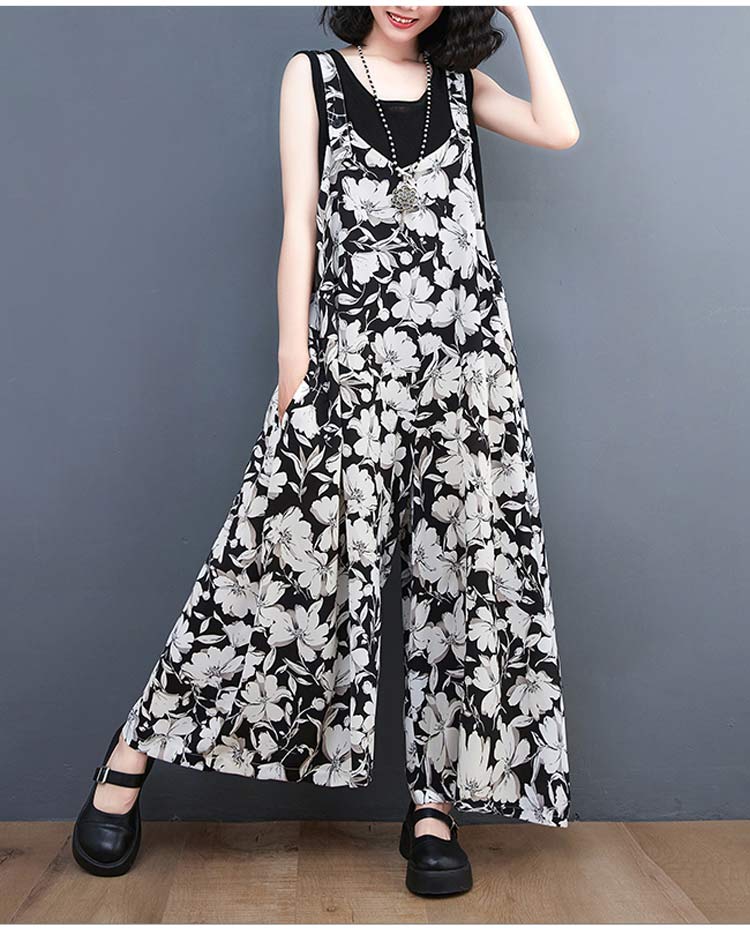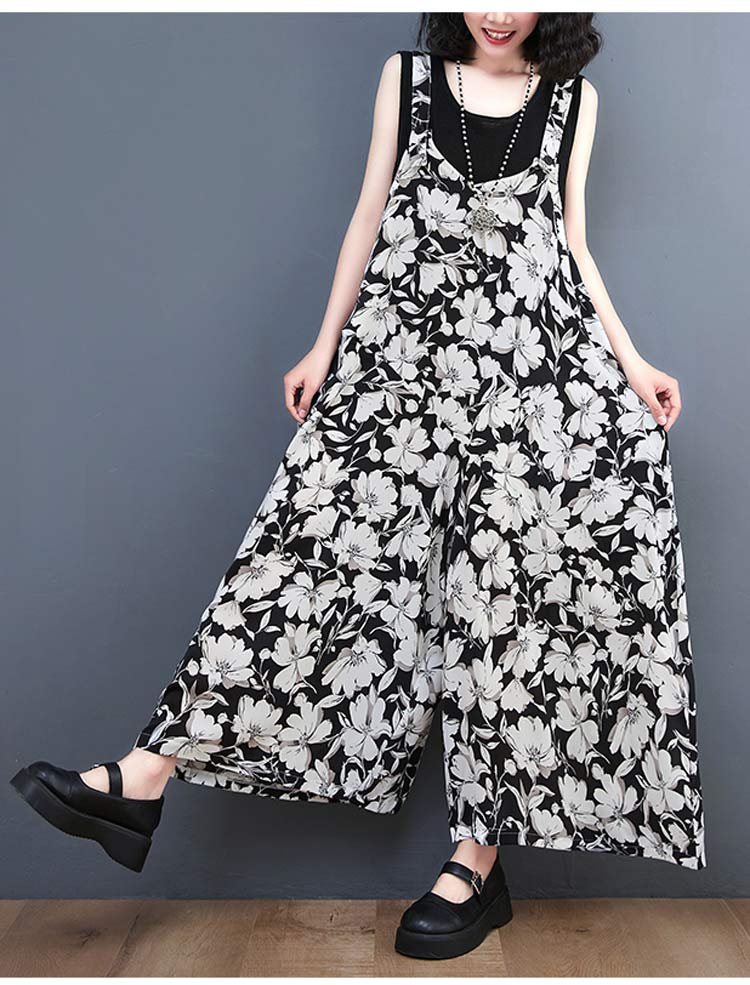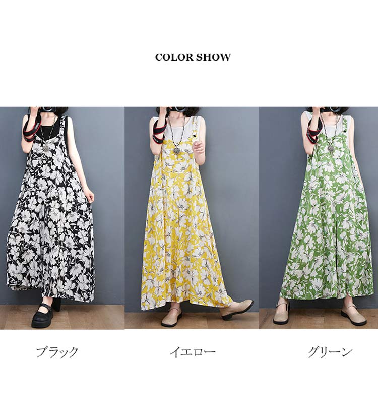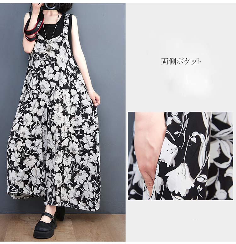 サロペット レディース 花柄 ガウチョ