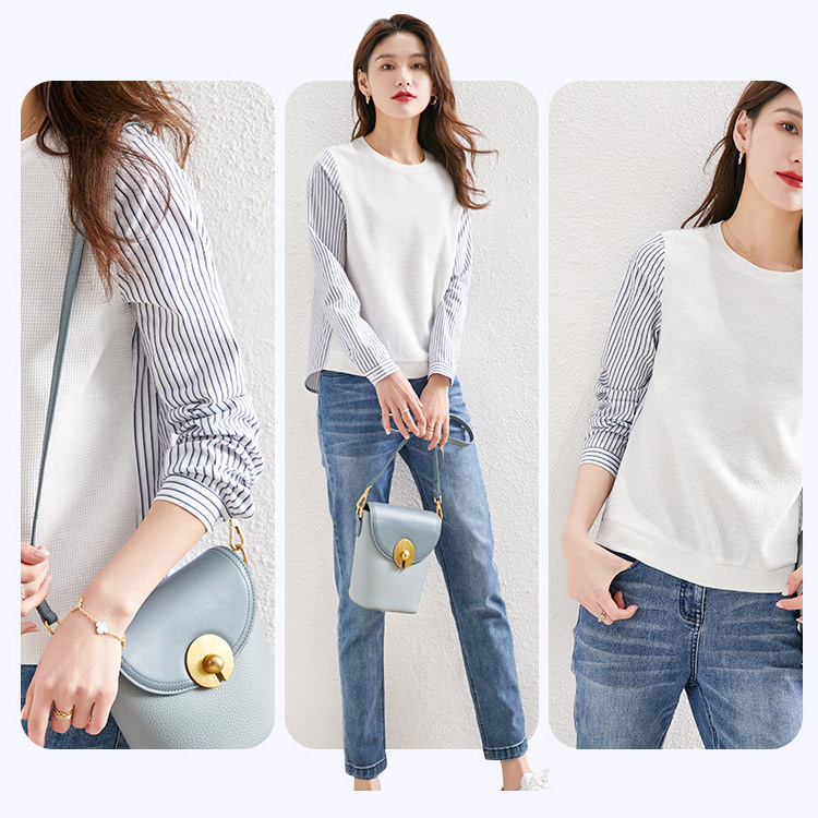 可愛い長袖重ね着風ブラウス ドッキング