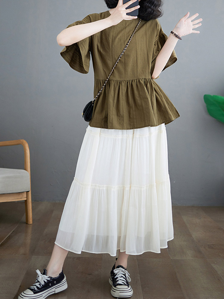 シフォンブラウス シアーブラウス ボリューム袖