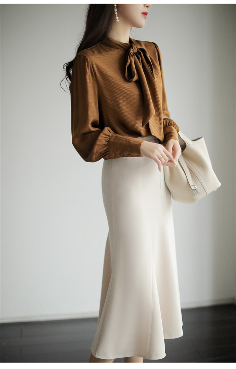 シアースリーブ ドッキングシャツ ボウタイシャツブラウス