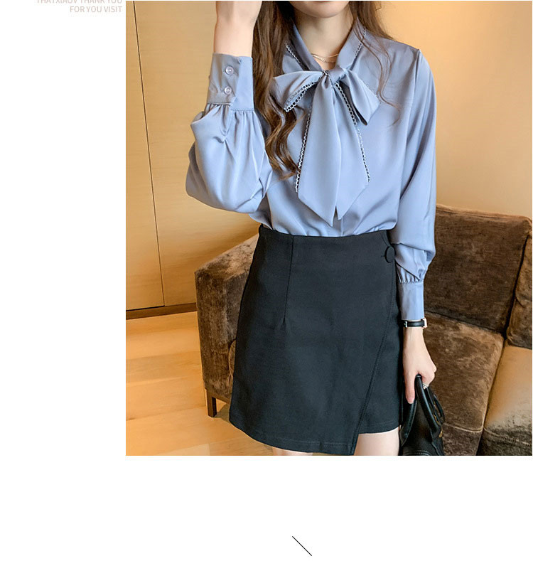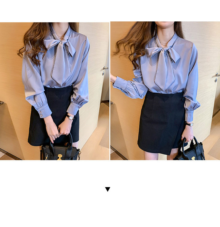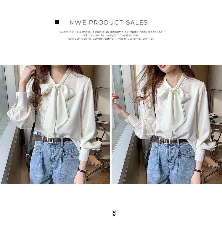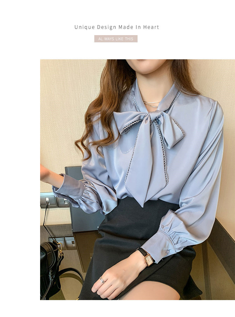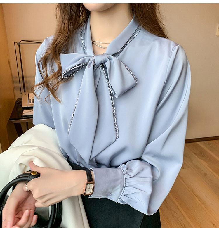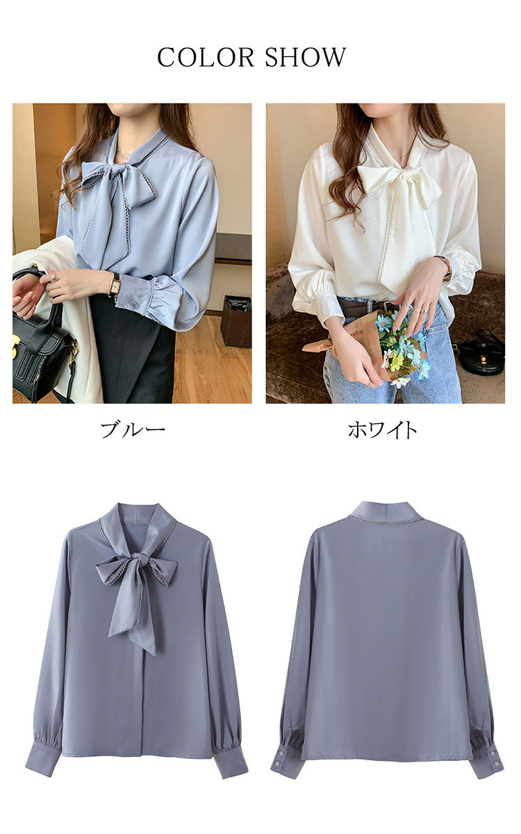 おしゃれリボンネックデザイン長袖シャツ