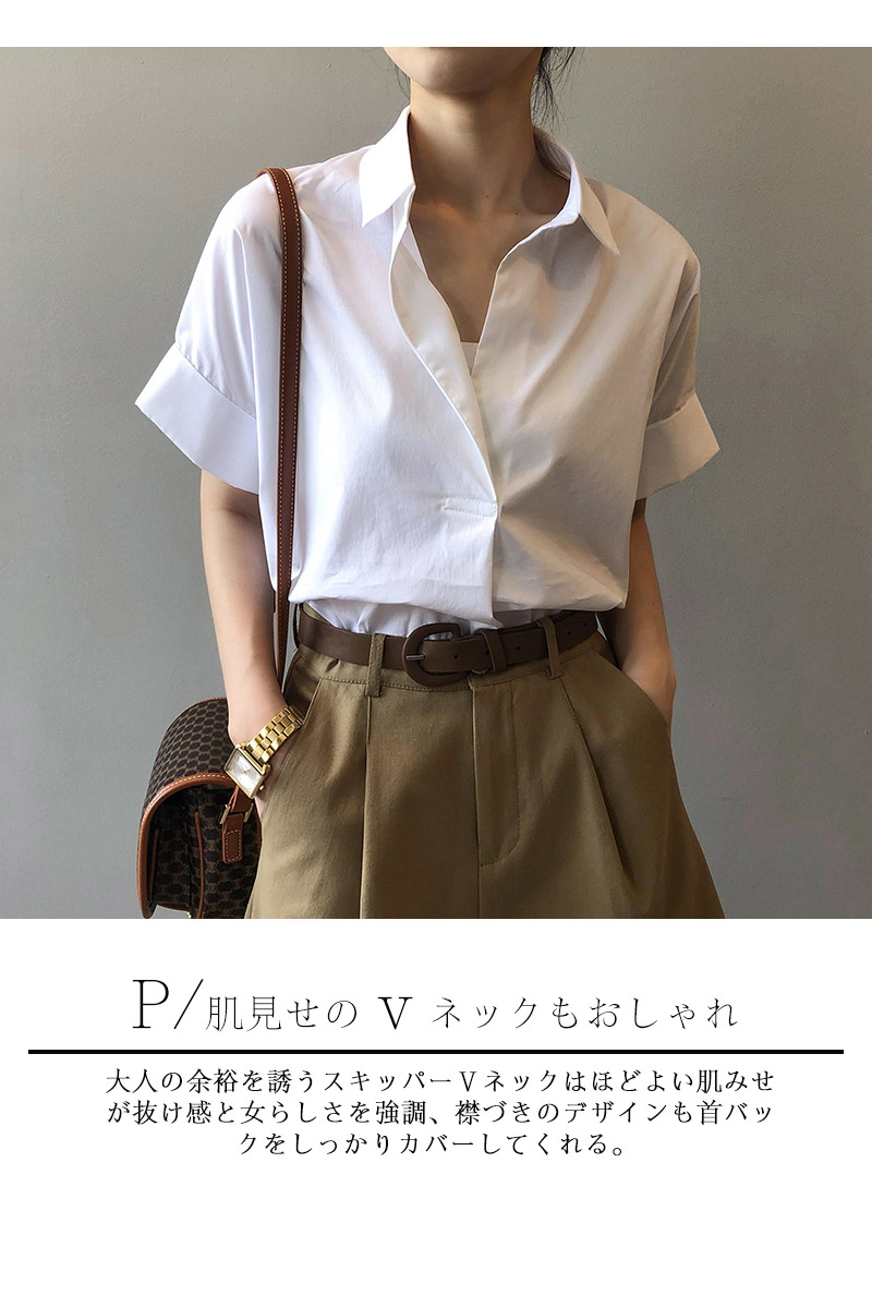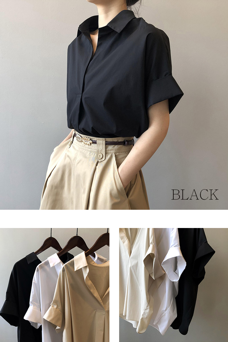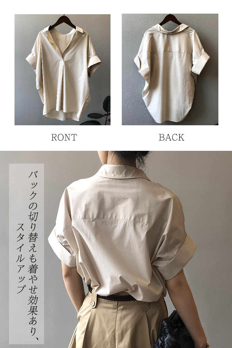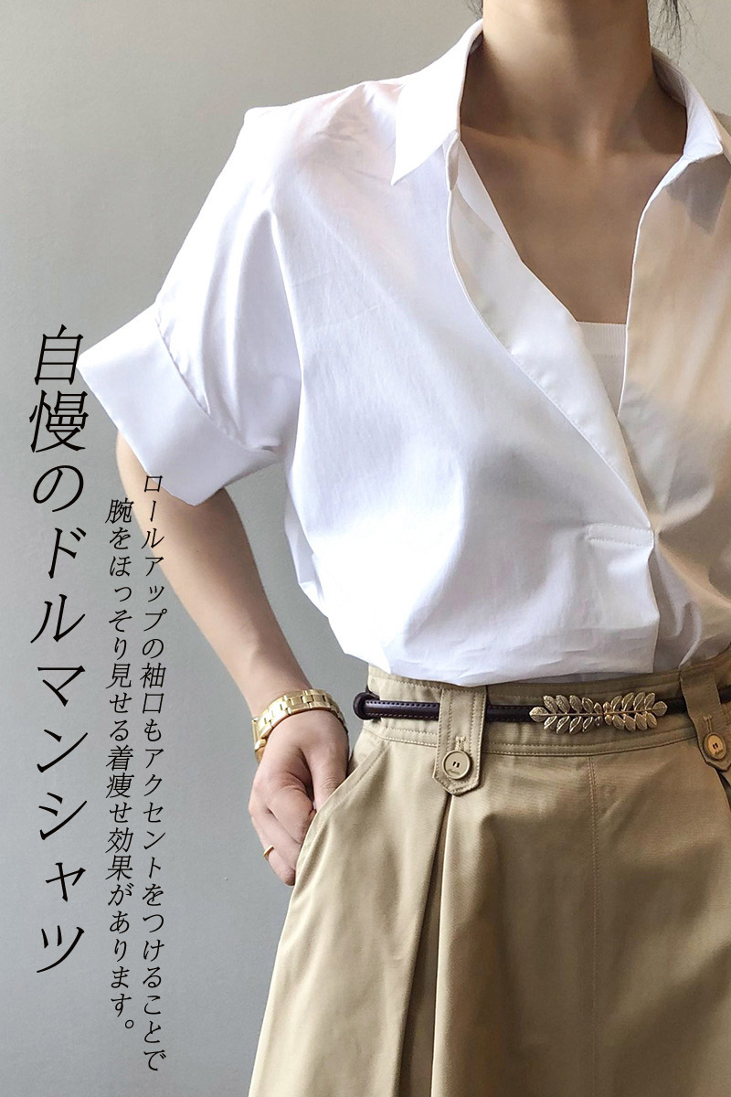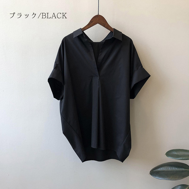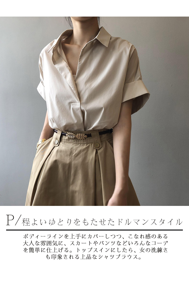 襟づきドルマンスタイルシャツブラウス