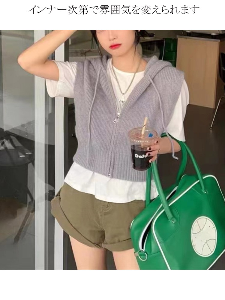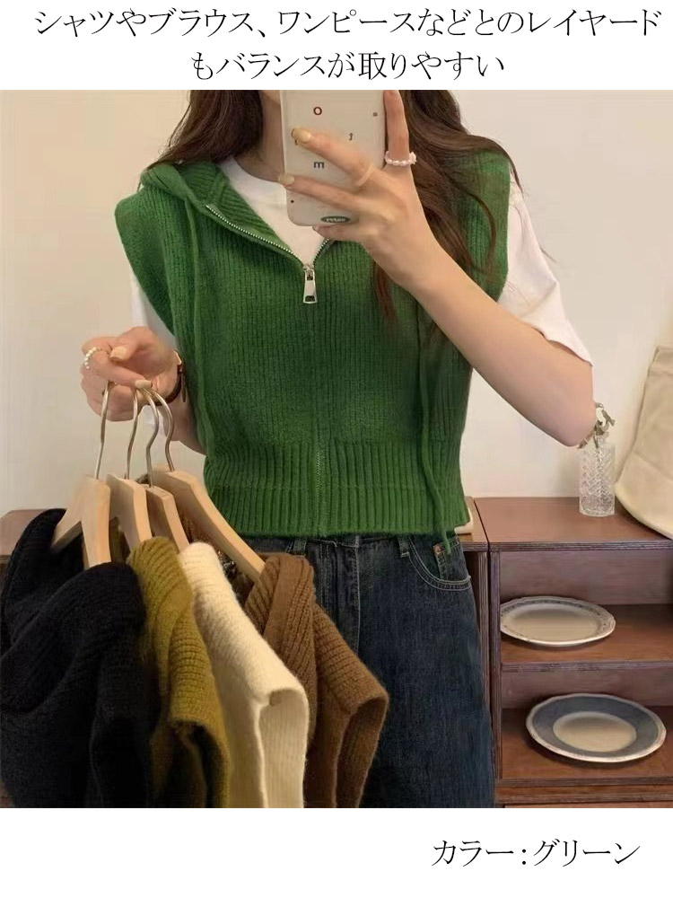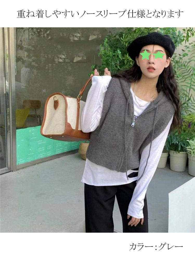 定番のフード付きニットベスト ベスト