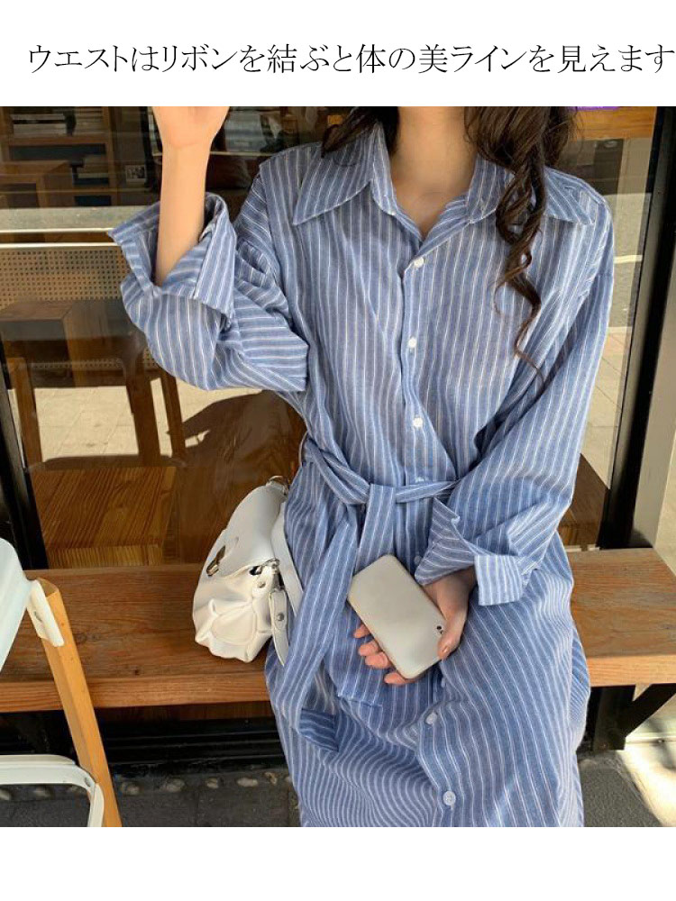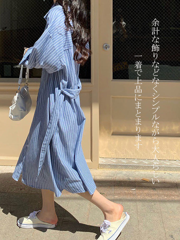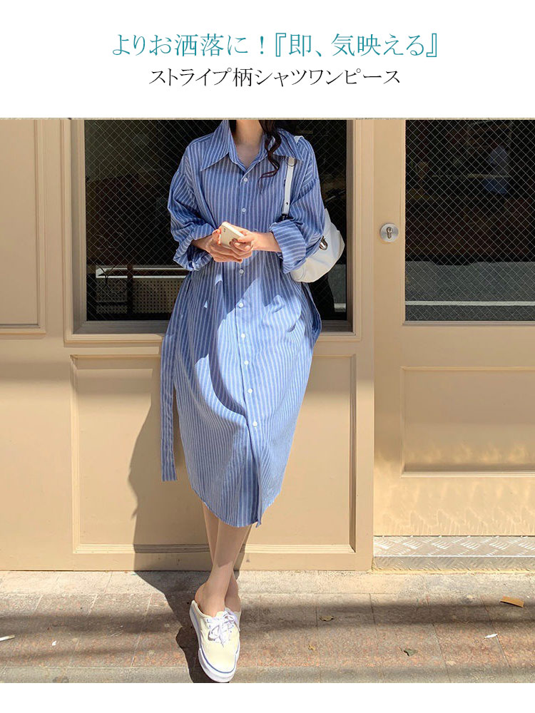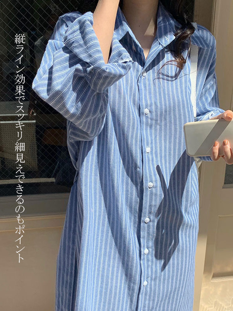 ストライプ シャツワンピ シャツ レデ