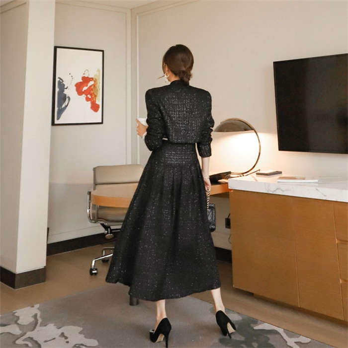 ツイードジャケット × フレアスカート