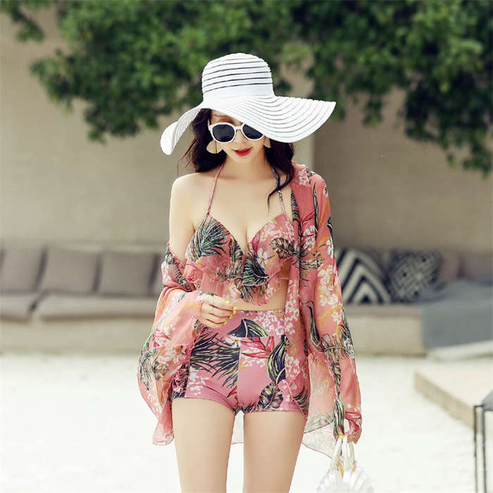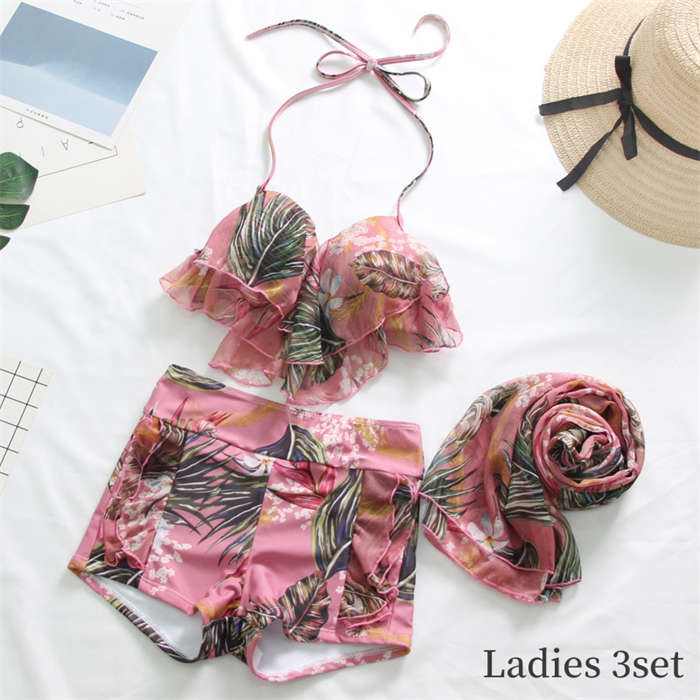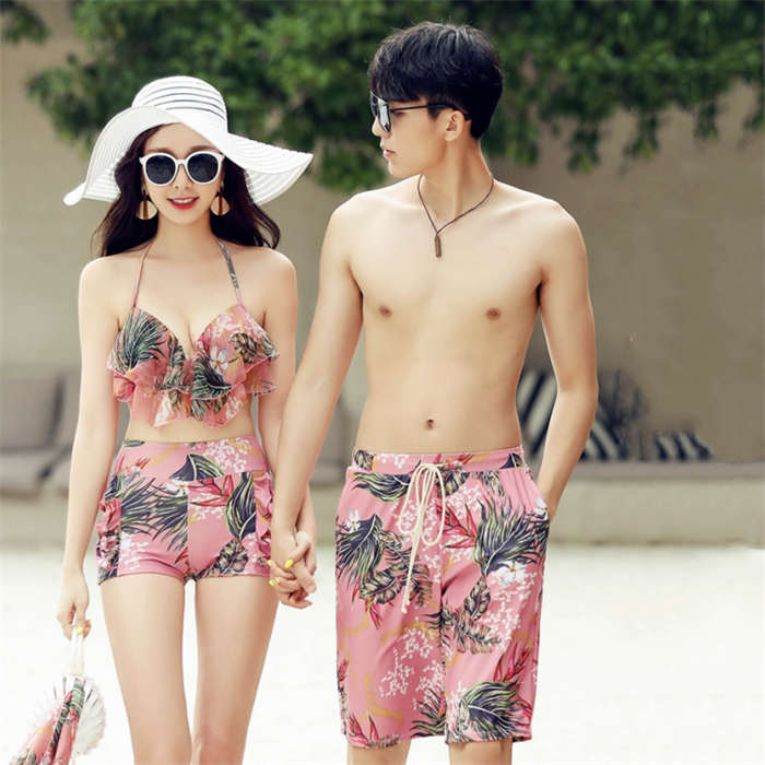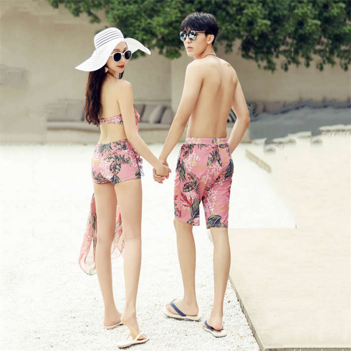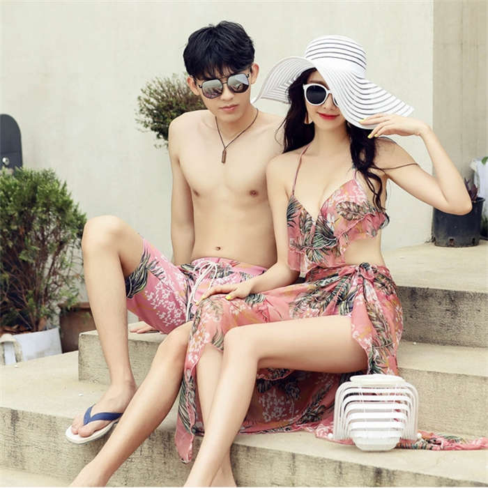 新作~ 花柄 カップル水着 4点セット