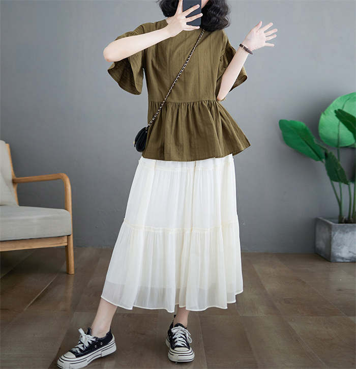 裾ペプラムがフェミニン感満載のフラウス