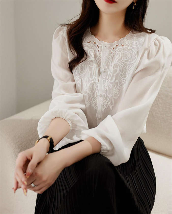 刺繍 ブラウス レディース 長袖 シャ