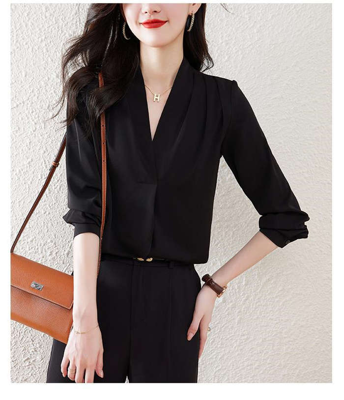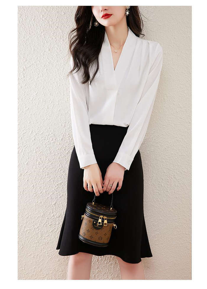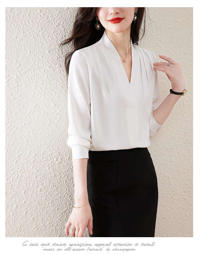 ブラウス フォーマル 長袖 白 Vネッ