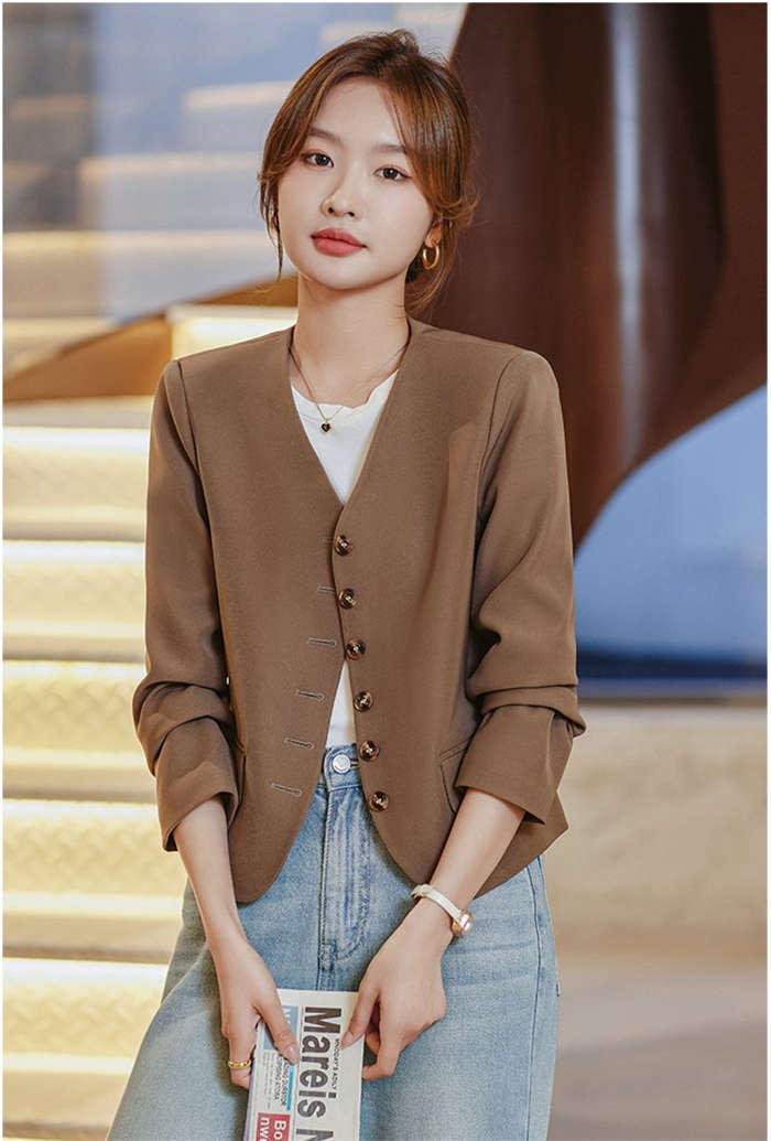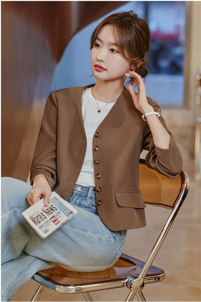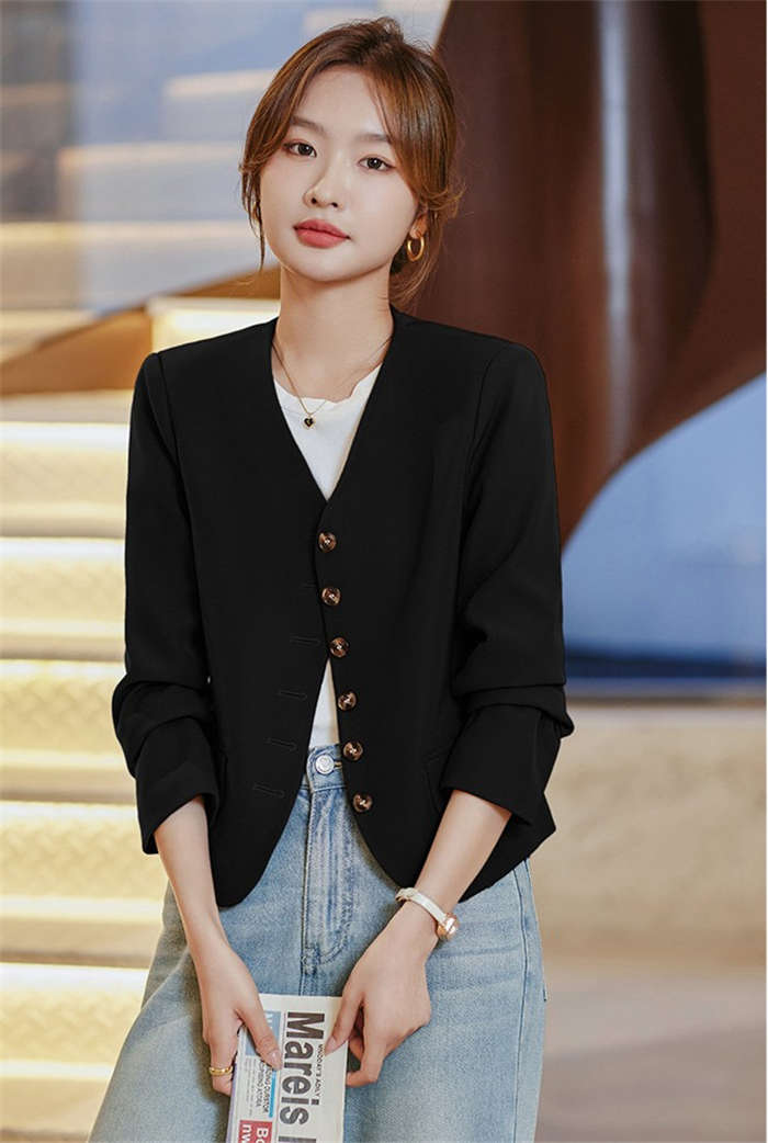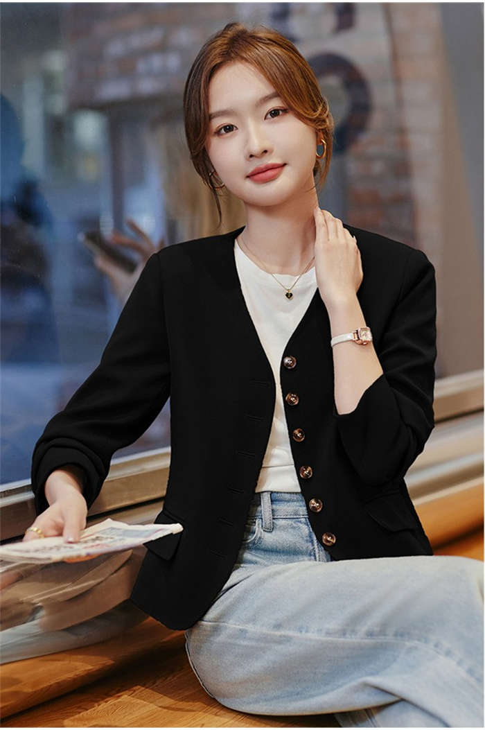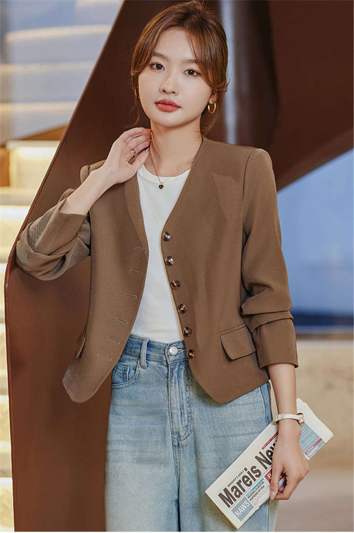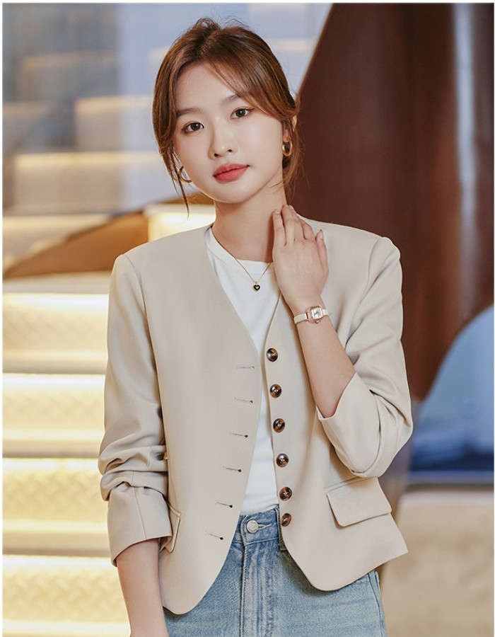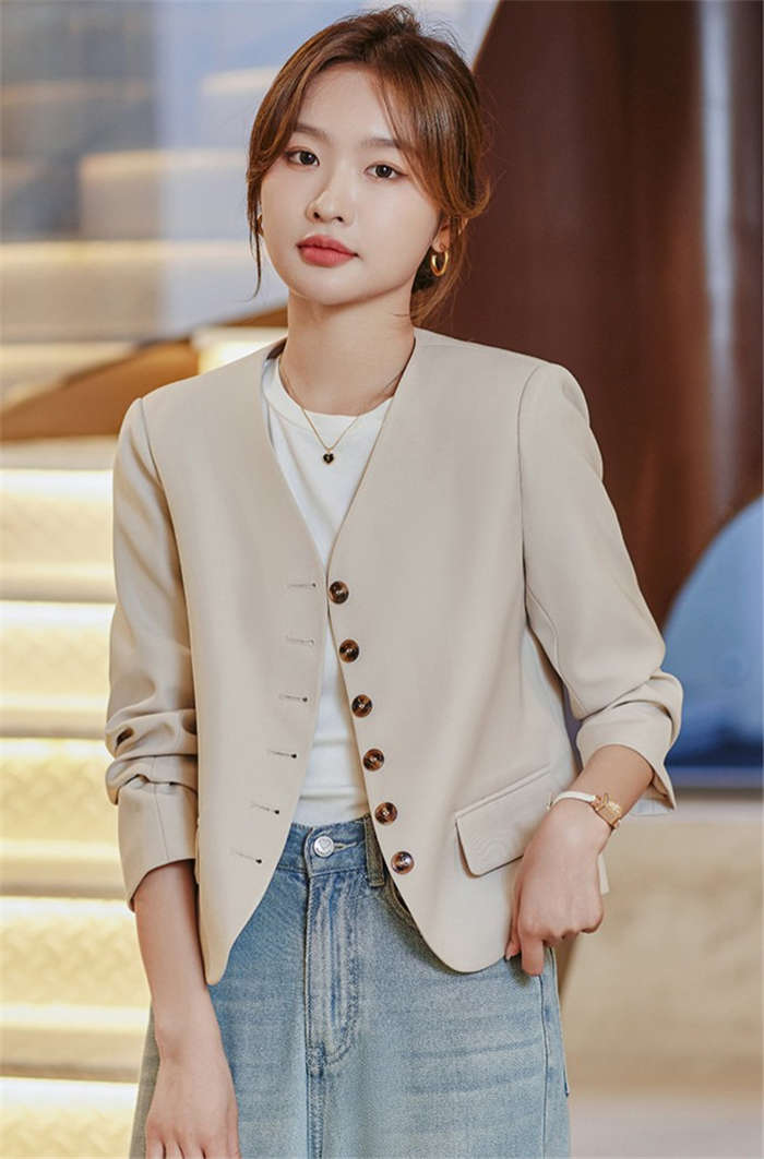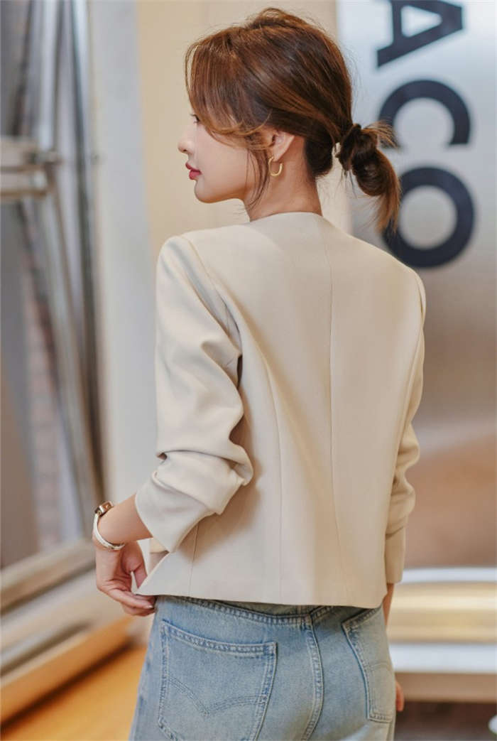 すっきりとしたカラーレスのテーラードジ