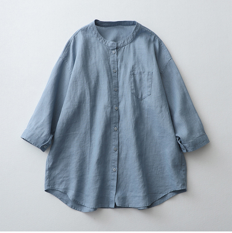 ブラウス 綿麻シャツ 七分袖シャツ 無