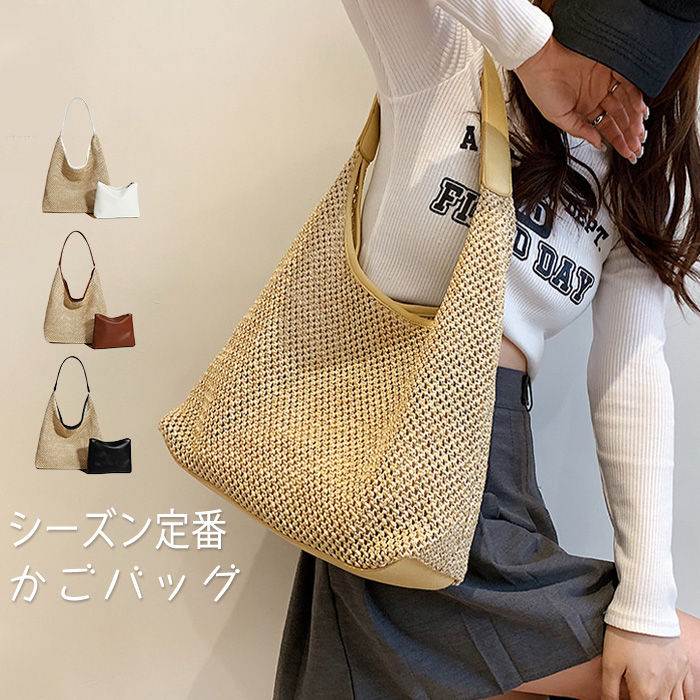 バッグ かごバッグ レディース トート ショルダー 夏 ファスナー 夏バッグ 肩掛け サマーバッグ トートバッグ カゴバッグ ハンドバッグ おしゃれ 浴衣 持ち手付き ナチュラル 大人 大きめ 女性