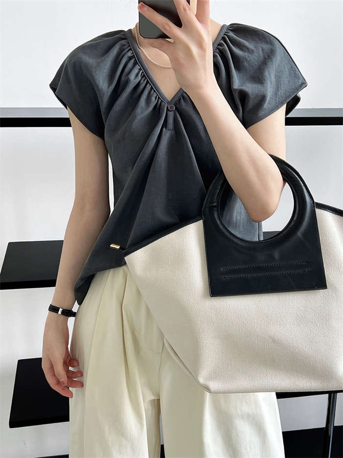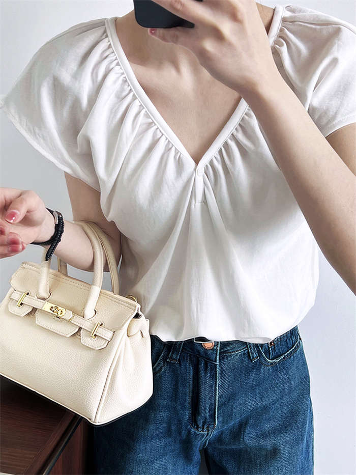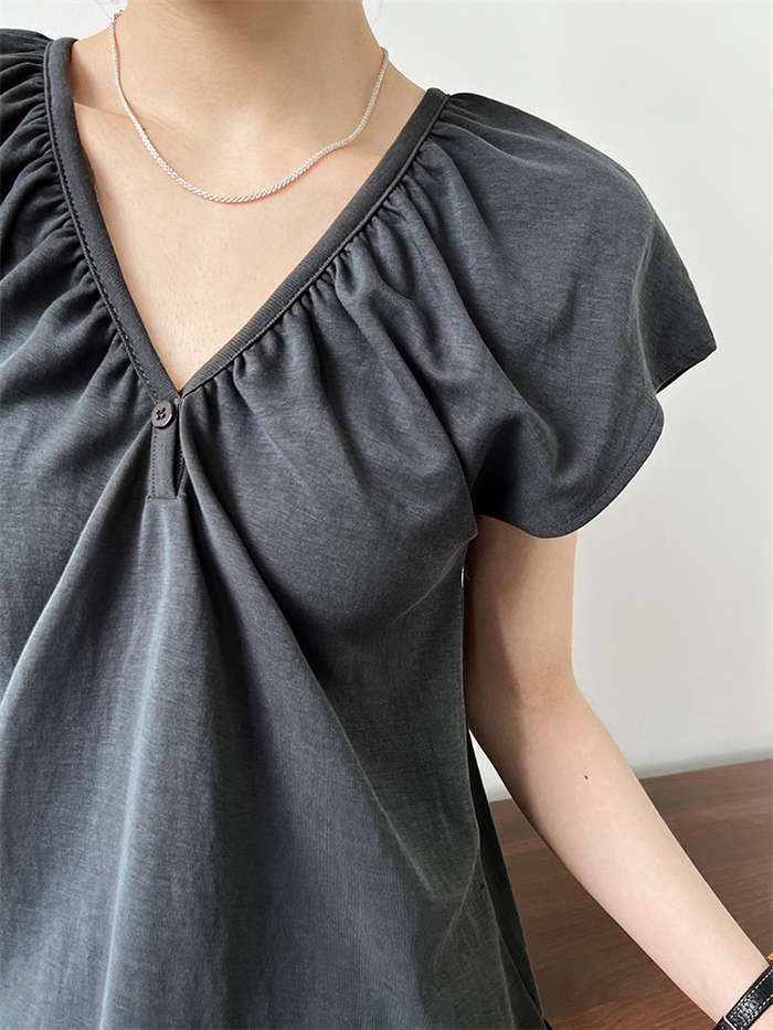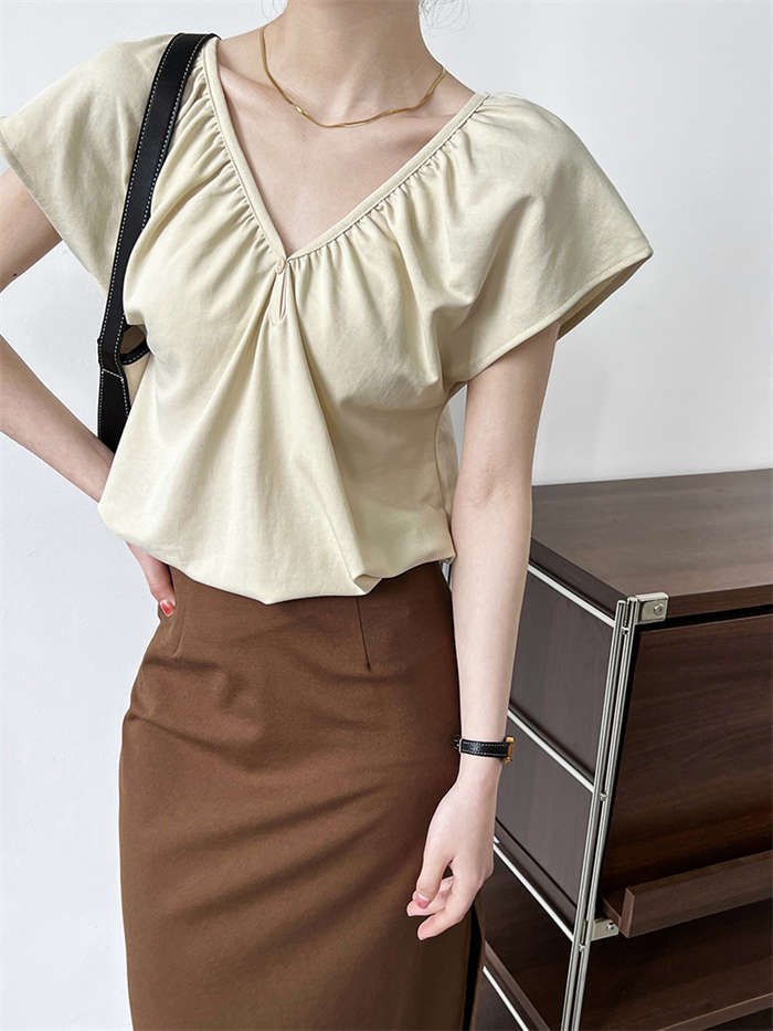 半袖Tシャツ、顔回りすっきり見えのVネ