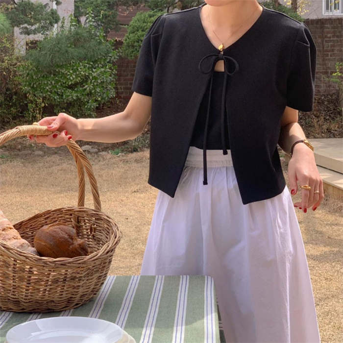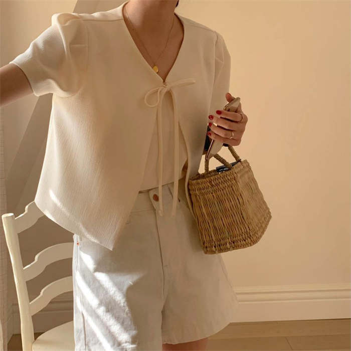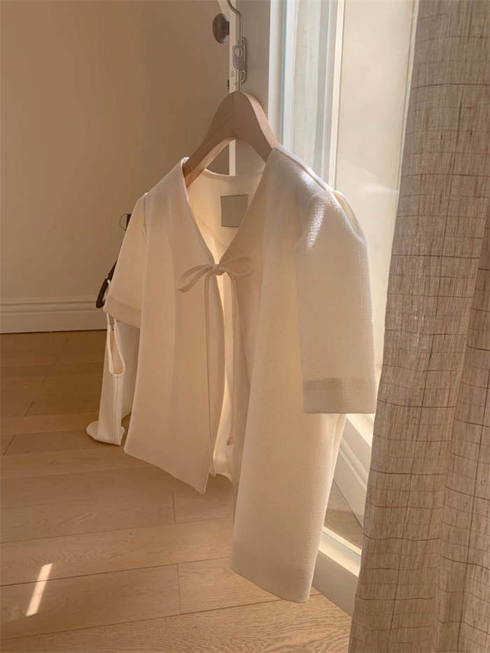 シアースリーブ ドッキングシャツ ボウタイシャツブラウス