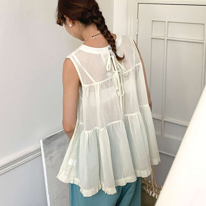 シアースリーブ ドッキングシャツ ボウタイシャツブラウス