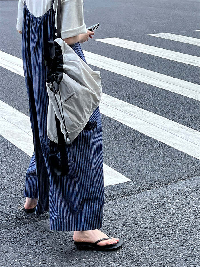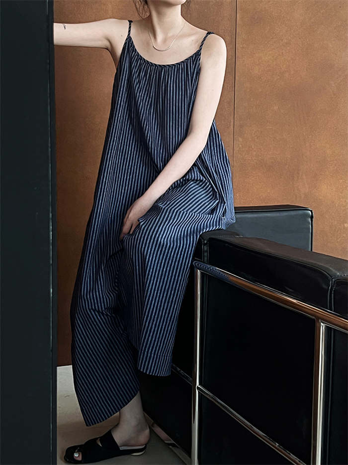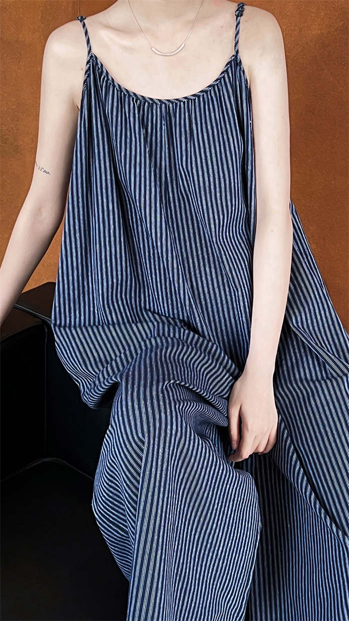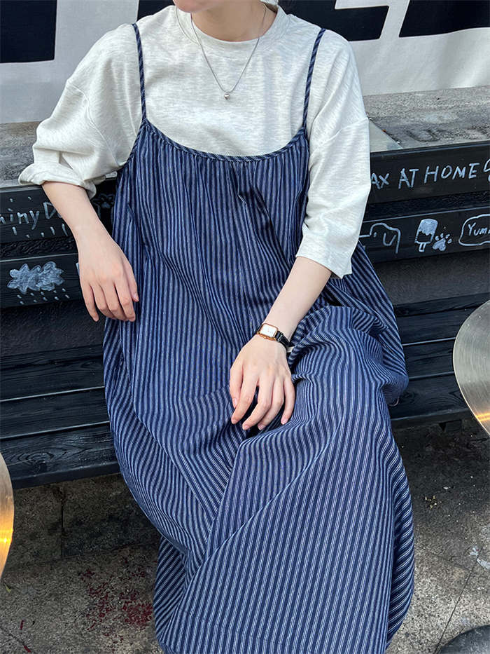 ストライプ柄が縦ラインを強調しスタイル