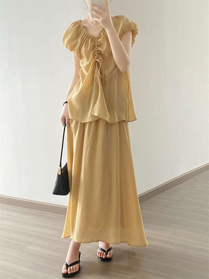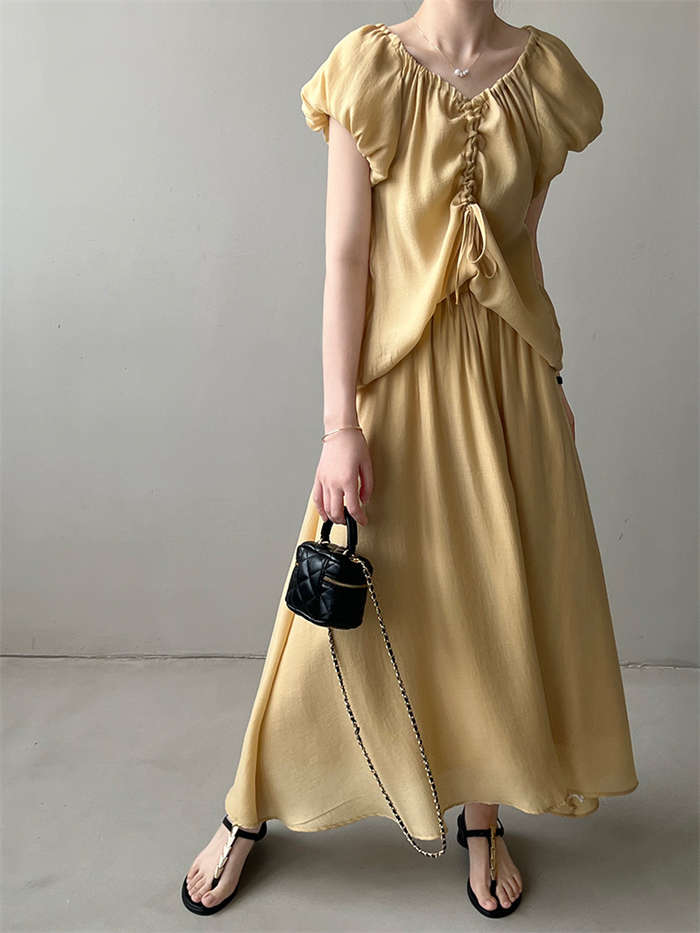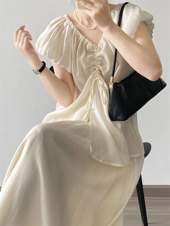 シアースリーブ ドッキングシャツ ボウタイシャツブラウス