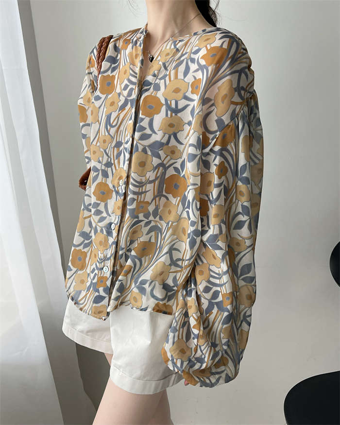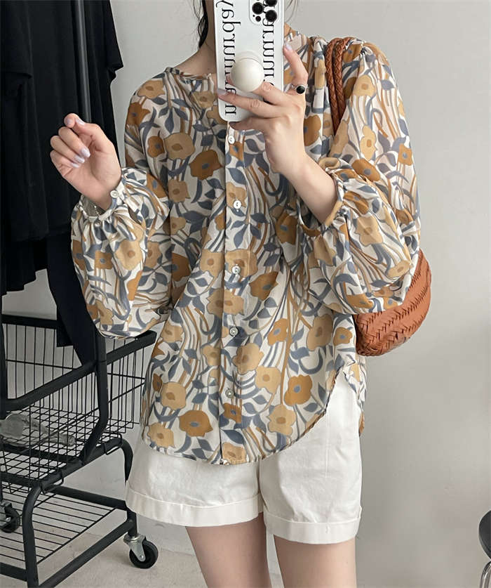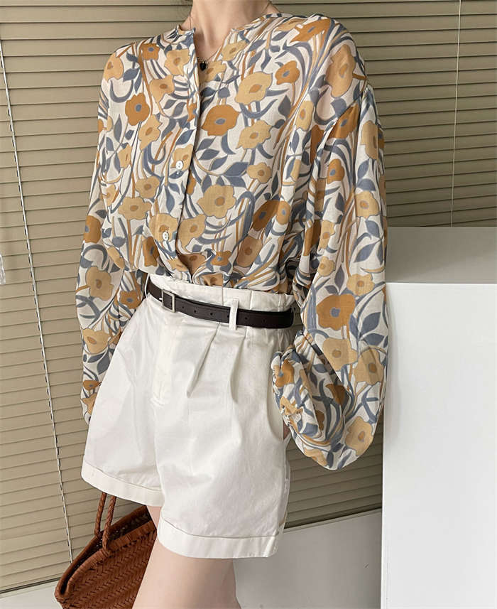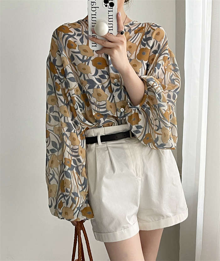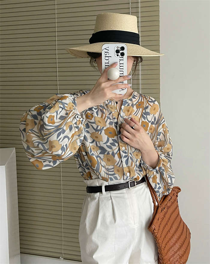 レトロ可愛い雰囲気を纏う、花柄シャツブ