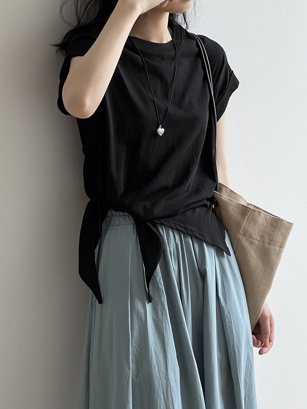 シアースリーブ ドッキングシャツ ボウタイシャツブラウス