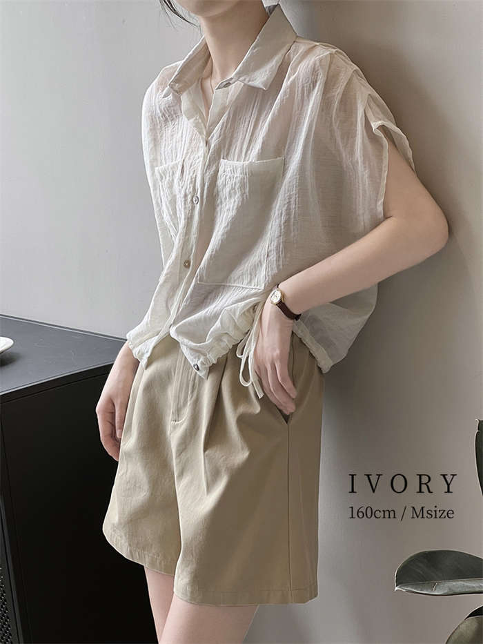 シアースリーブ ドッキングシャツ ボウタイシャツブラウス