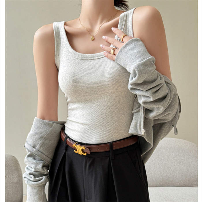 タンクトップレディースTシャツノースリーブUネックロゴプリント