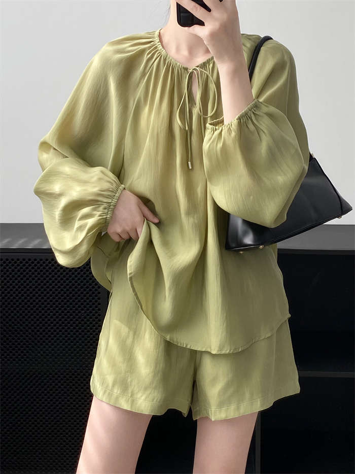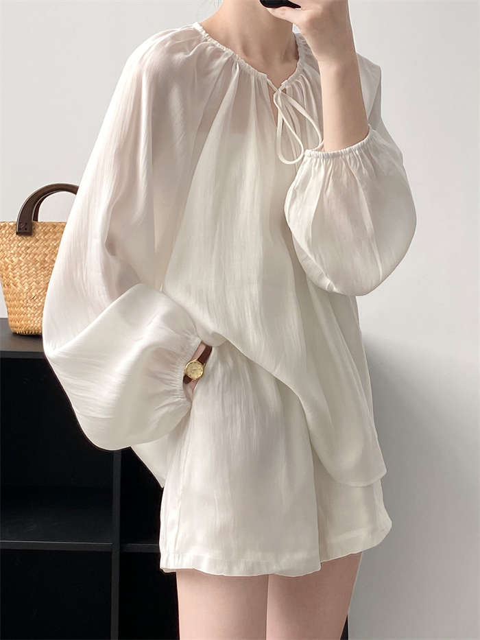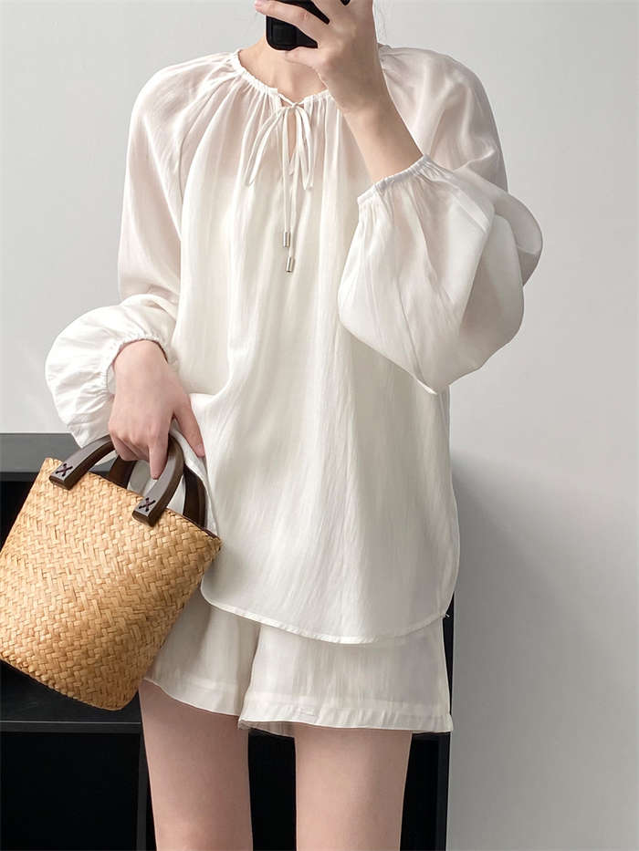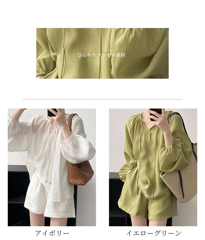 シアースリーブ ドッキングシャツ ボウタイシャツブラウス