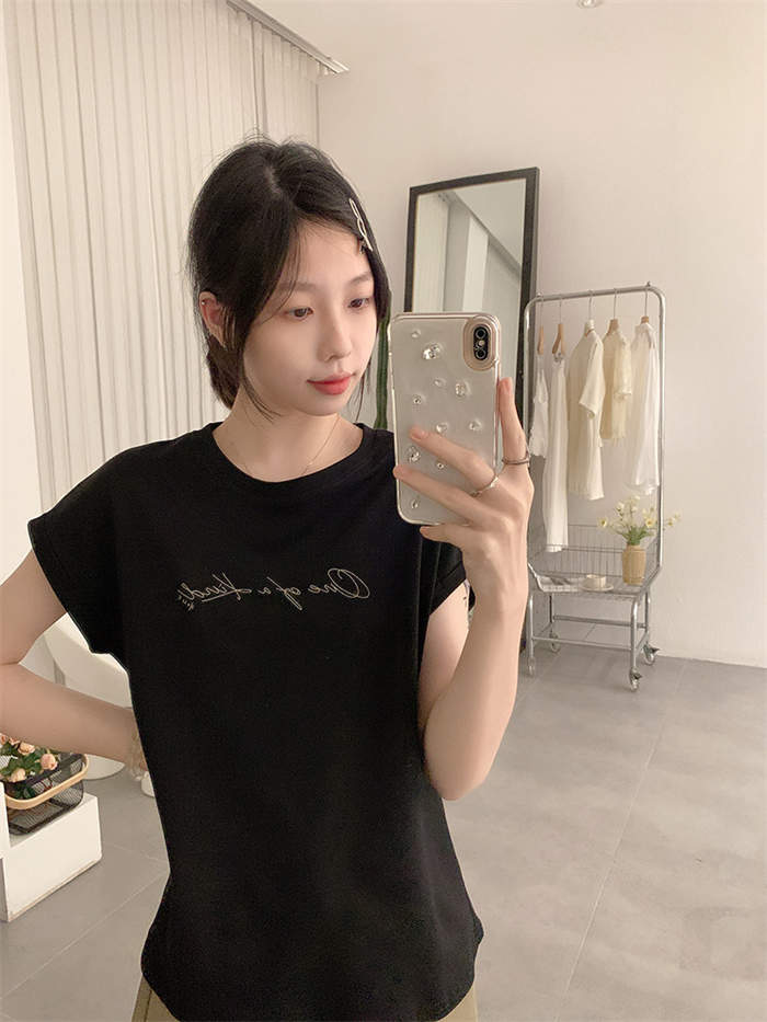 タンクトップレディースTシャツノースリーブUネックロゴプリント