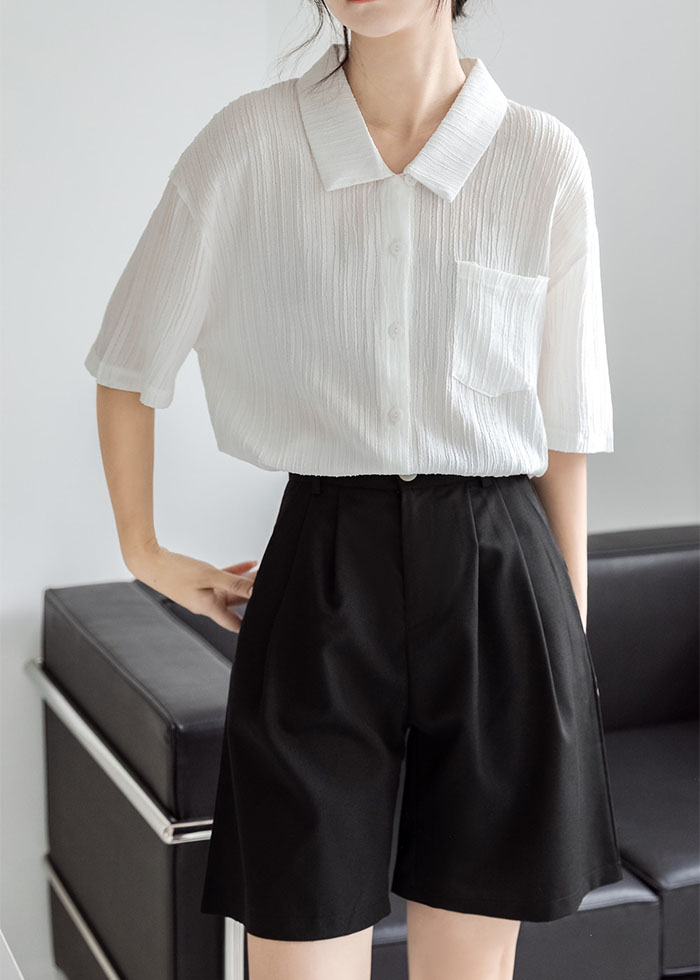 シアースリーブ ドッキングシャツ ボウタイシャツブラウス