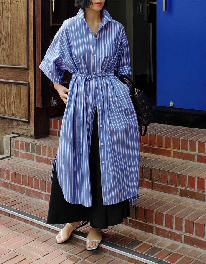 シャツ ワンピース 長袖 シャツワンピース ロング