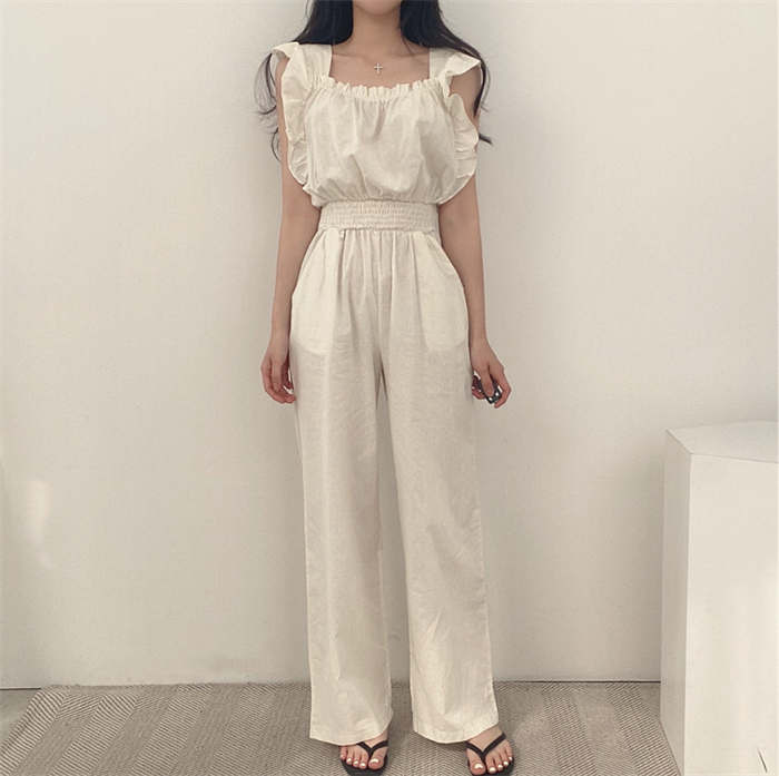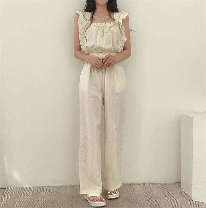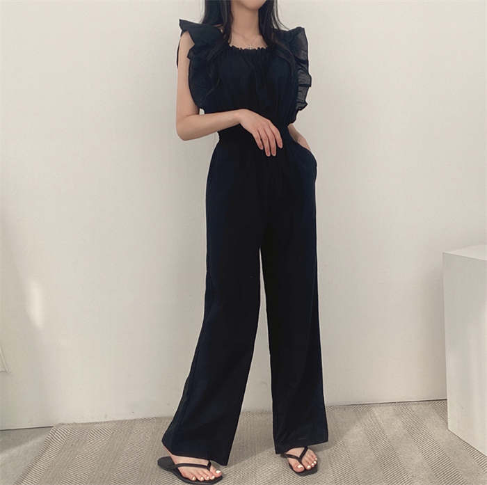 ギャザーフリルショルダーワイドオールイ