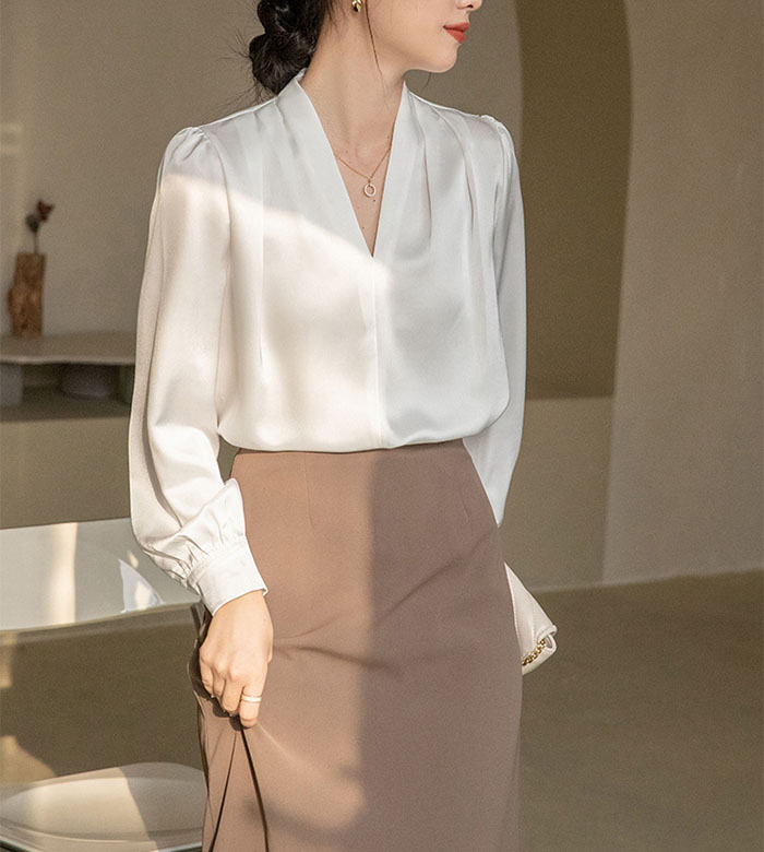 シフォンブラウス シアーブラウス ボリューム袖